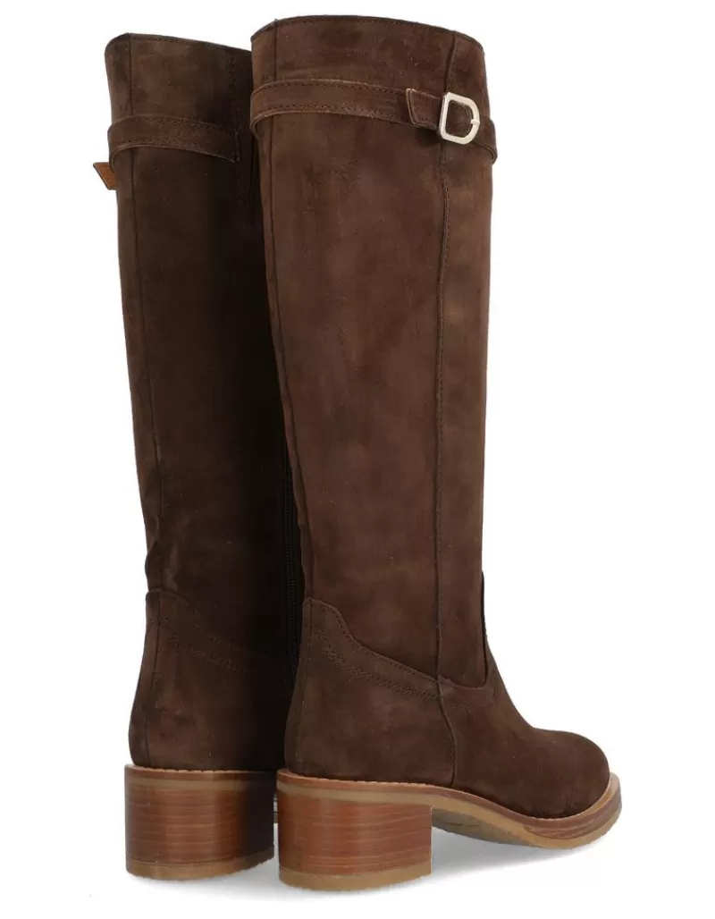 Bota Para Mujer Alpe Madame, Fabricada En Piel (Baby Silk) De Color Arabica Con Tacon De 5 Cm, Suela Antideslizante Y Puntera Redonda, Con Cierre Mediante Cremallera Y Cana Alta.