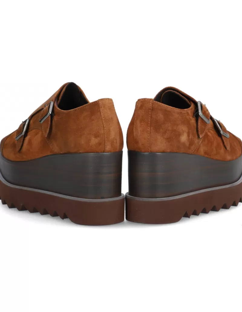 Zapato Para Mujer Alpe London, Fabricado En Piel (Piel) De Color Cuero Sin Tacon, Suela Antideslizante Y Puntera Redonda, Con Cierre Mediante Hebilla.