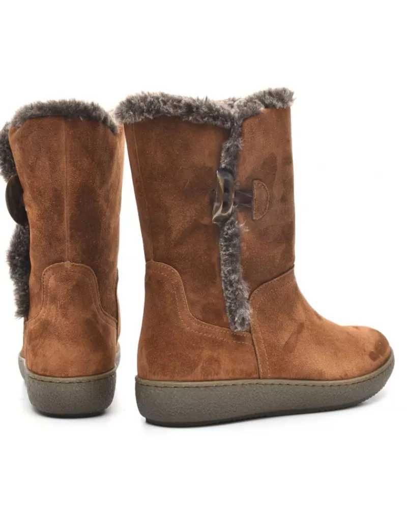 Botin Para Mujer Alpe Urban, Fabricado En Piel (Baby Silk) De Color Cuero Sin Tacon, Suela Antideslizante Y Puntera Redonda, Sin Cierre Y Cana Media.