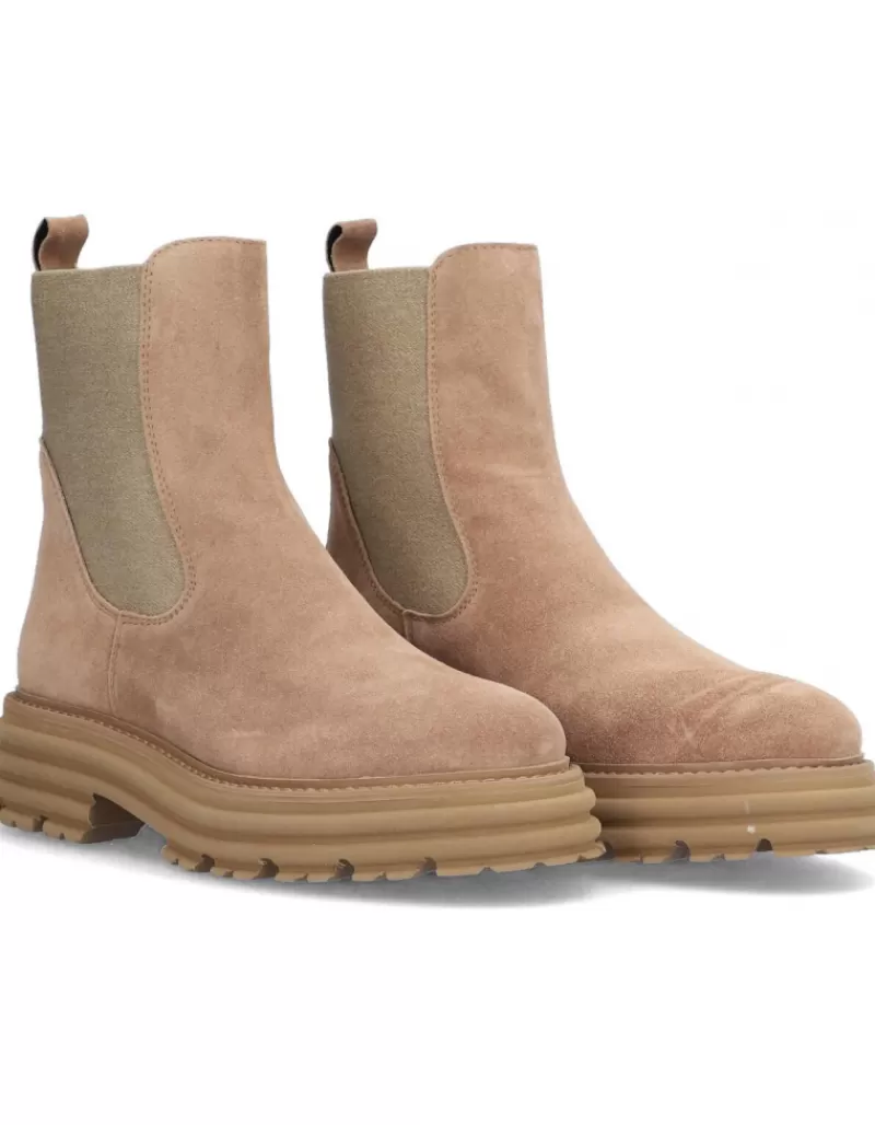 Bota Para Mujer Alpe Alabama, Fabricada En Piel (Baby Silk) De Color Bryce Con Tacon De 5 Cm, Suela Antideslizante Y Puntera Redonda, Sin Cierre Y Cana Media.