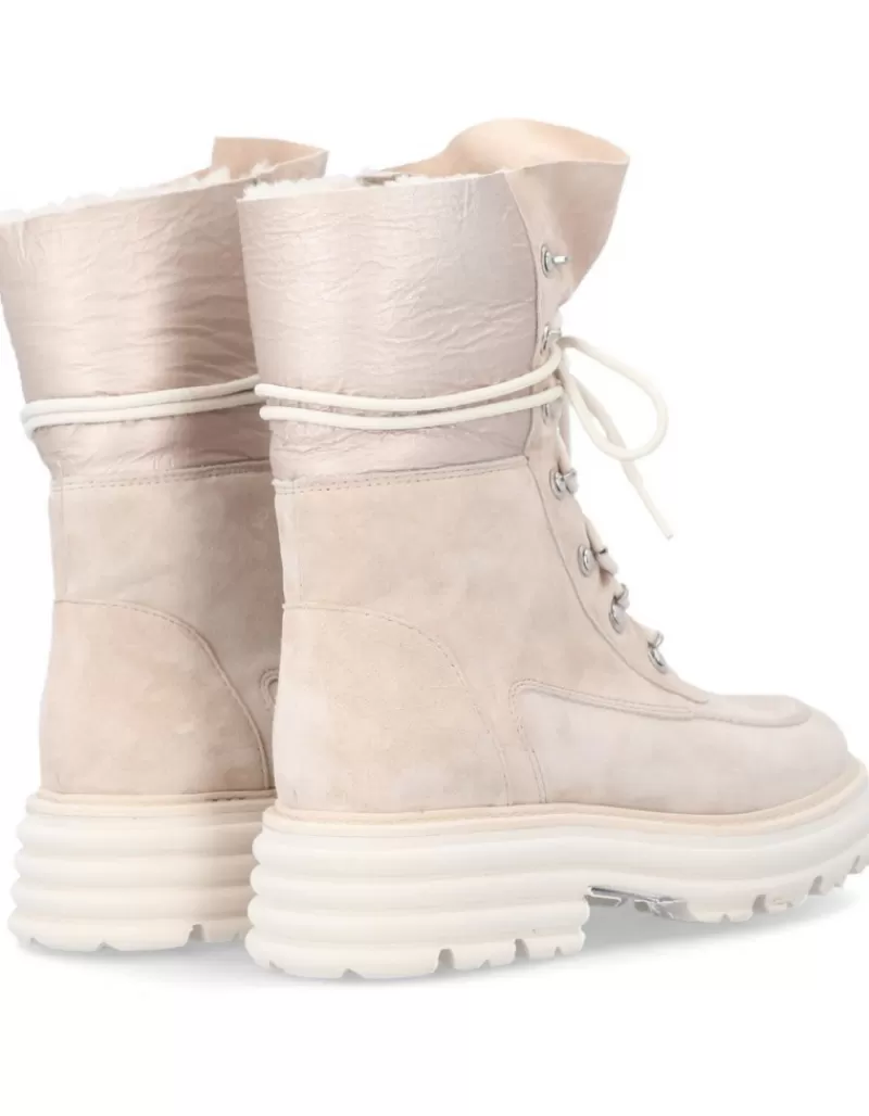 Bota Para Mujer Alpe Alabama, Fabricada En Piel (Baby Silk) De Color Calcare Con Tacon De 5 Cm, Suela Antideslizante Y Puntera Redonda, Con Cierre Mediante Cordon Y Cana Media.