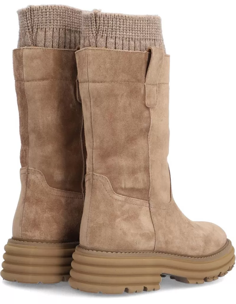 Bota Para Mujer Alpe Alabama, Fabricada En Piel (Baby Silk) De Color Bryce Con Tacon De 5 Cm, Suela Antideslizante Y Puntera Redonda, Sin Cierre Y Cana Media.