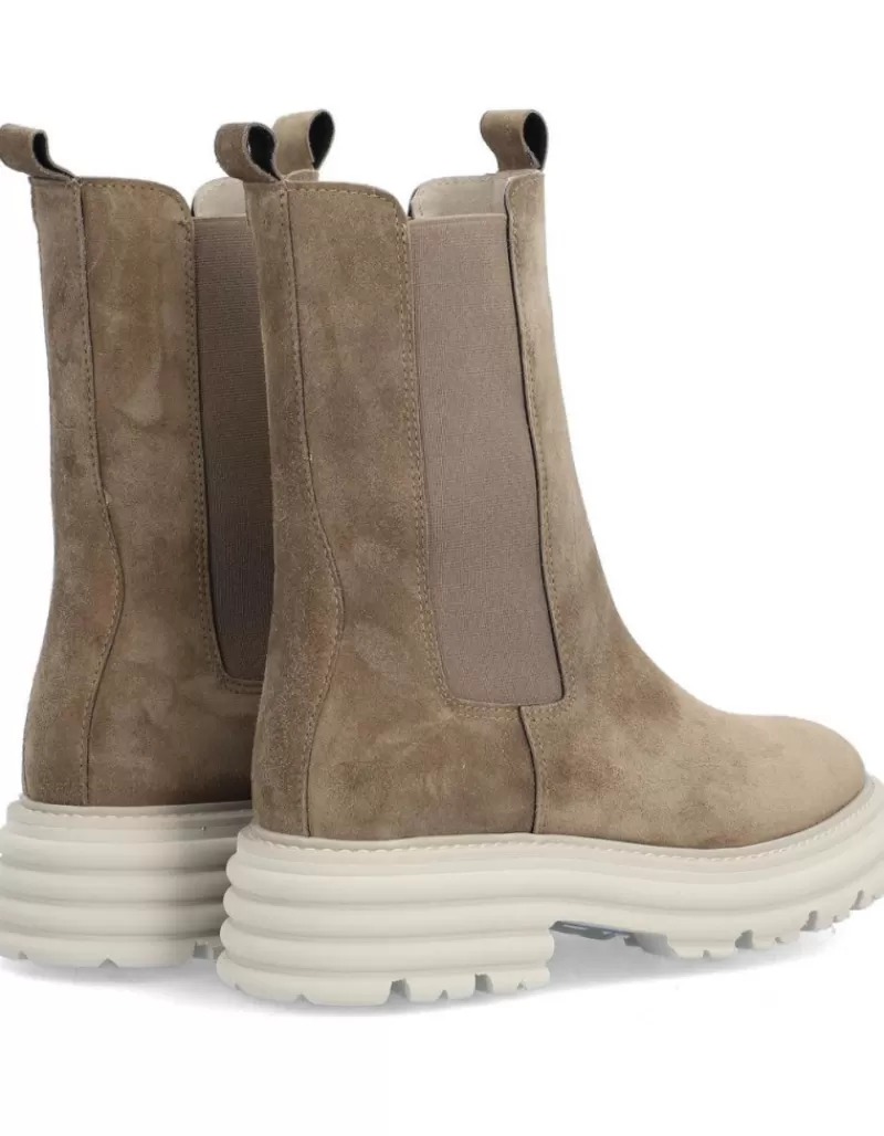 Bota Para Mujer Alpe Alabama, Fabricada En Piel (Baby Silk) De Color Sander Con Tacon De 5 Cm, Suela Antideslizante Y Puntera Redonda, Sin Cierre Y Cana Media.