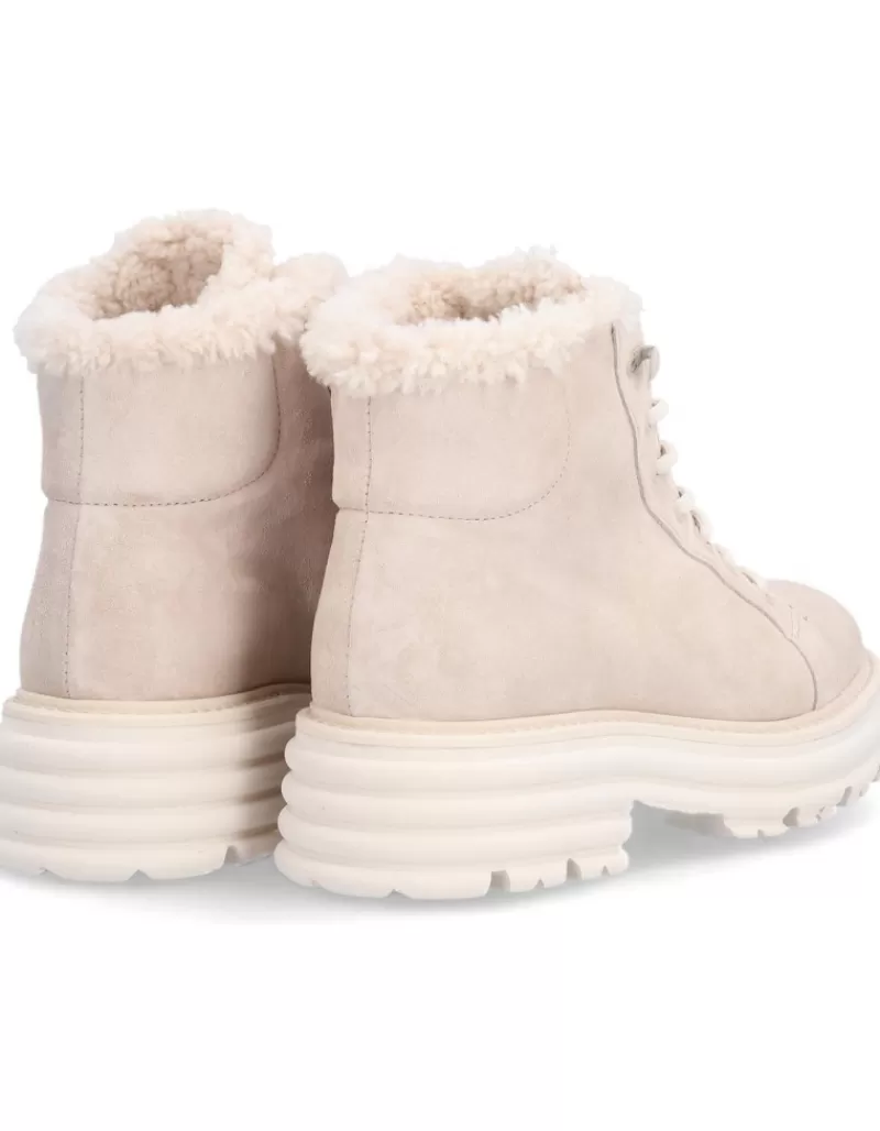 Bota Para Mujer Alpe Alabama, Fabricada En Piel (Baby Silk) De Color Calcare Con Tacon De 5 Cm, Suela Antideslizante Y Puntera Redonda, Con Cierre Mediante Cordon Y Cana Baja.