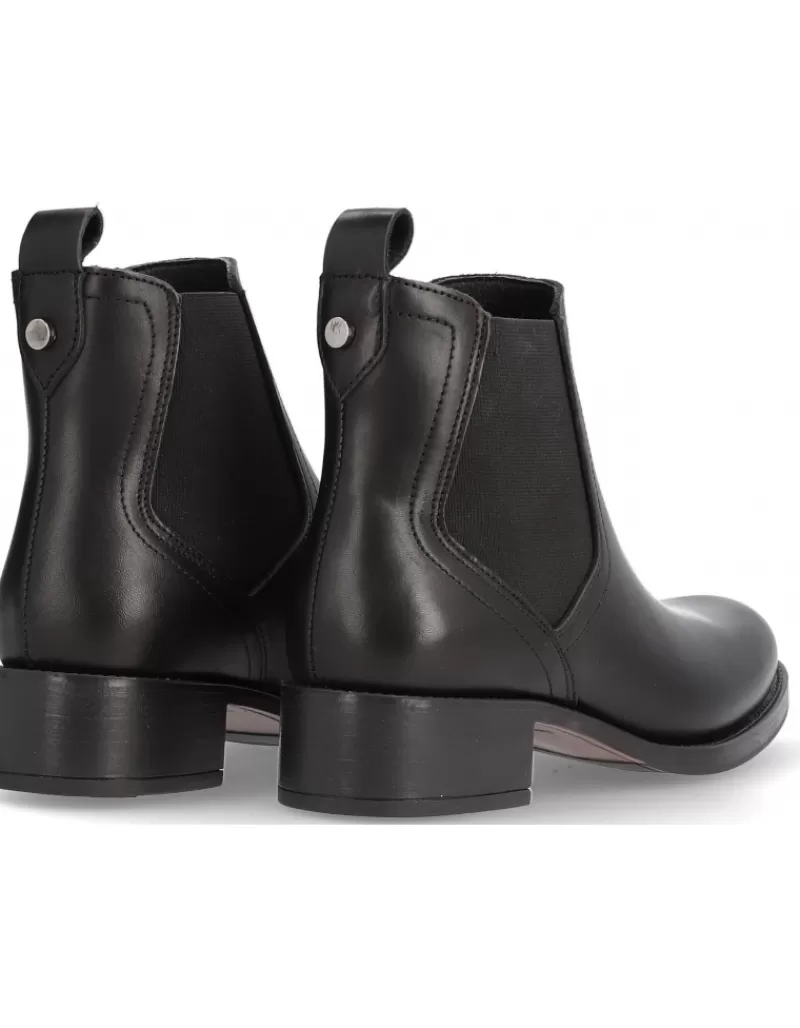 Botin Para Mujer Alpe Alain-2, Fabricado En Piel (Becerro) De Color Negro Con Tacon De 3,5 Cm, Suela Antideslizante Y Puntera Redonda, Sin Cierre Y Cana Baja.
