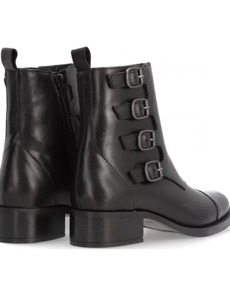 Botin Para Mujer Alpe Alain-2, Fabricado En Piel (Becerro) De Color Negro Con Tacon De 3,5 Cm, Suela Antideslizante Y Puntera Redonda, Con Cierre Mediante Cremallera Y Cana Baja.