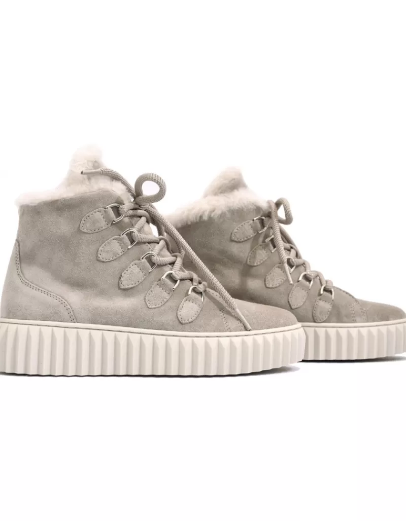 Sneaker Casual Para Mujer Alpe Alba, Fabricado En Piel (Baby Silk) De Color Polar Sin Tacon, Suela Antideslizante Y Puntera Redonda, Con Cierre Mediante Cordon Y Cana Baja.