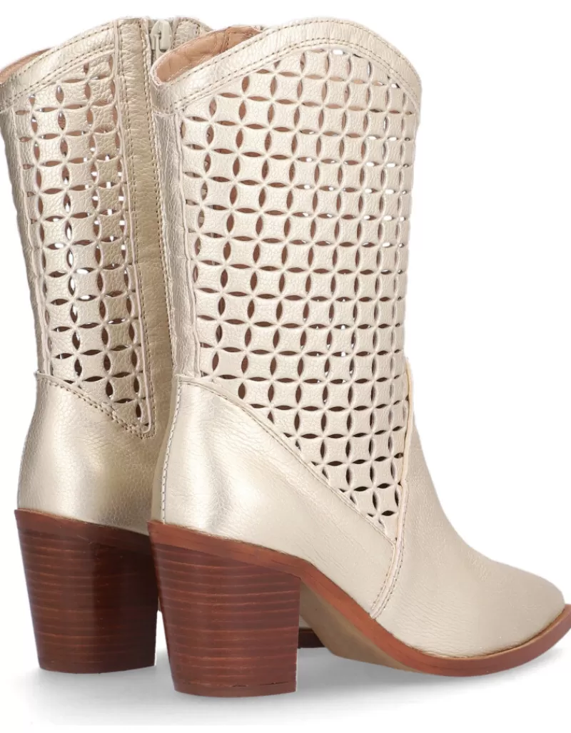 Boots Para Woman Alpe Alina, Fabricado En Piel (Gibson) De Color Platino Con Tacon De 6,5 Cm, Suela Antideslizante Y Puntera Afilada, Con Cierre Mediante Cremallera Y Cana Medium.