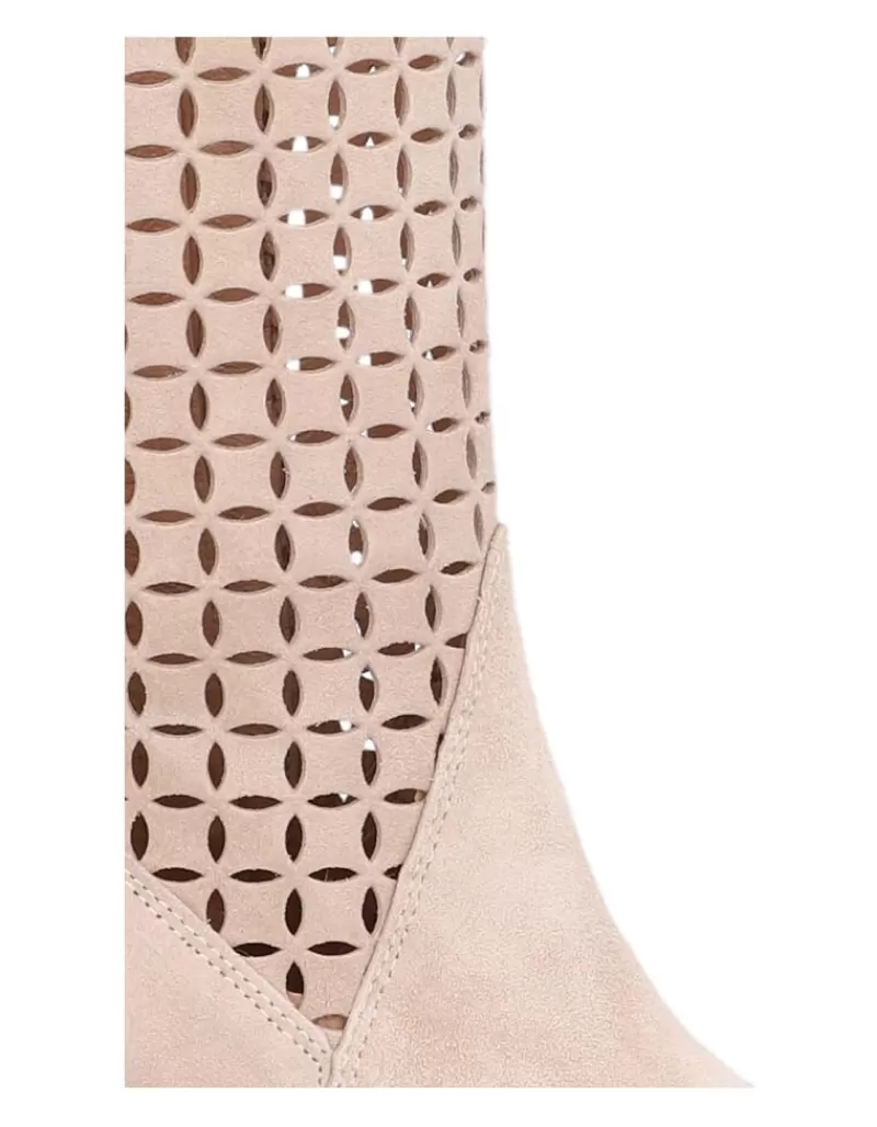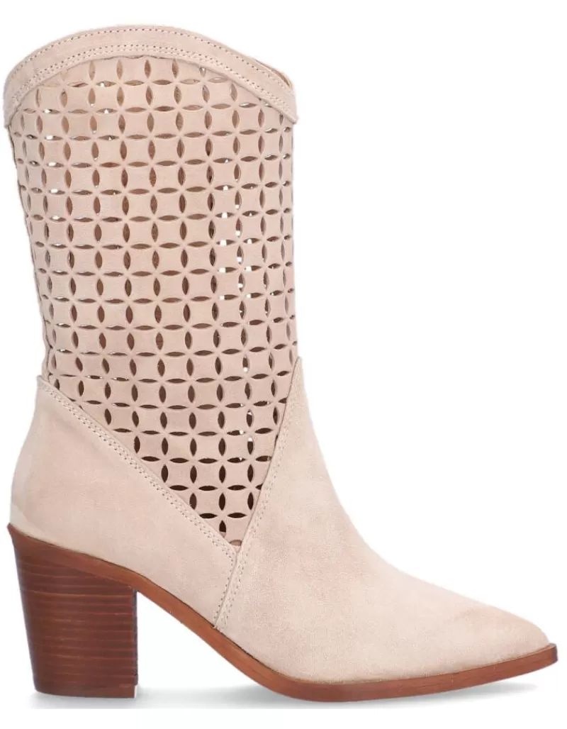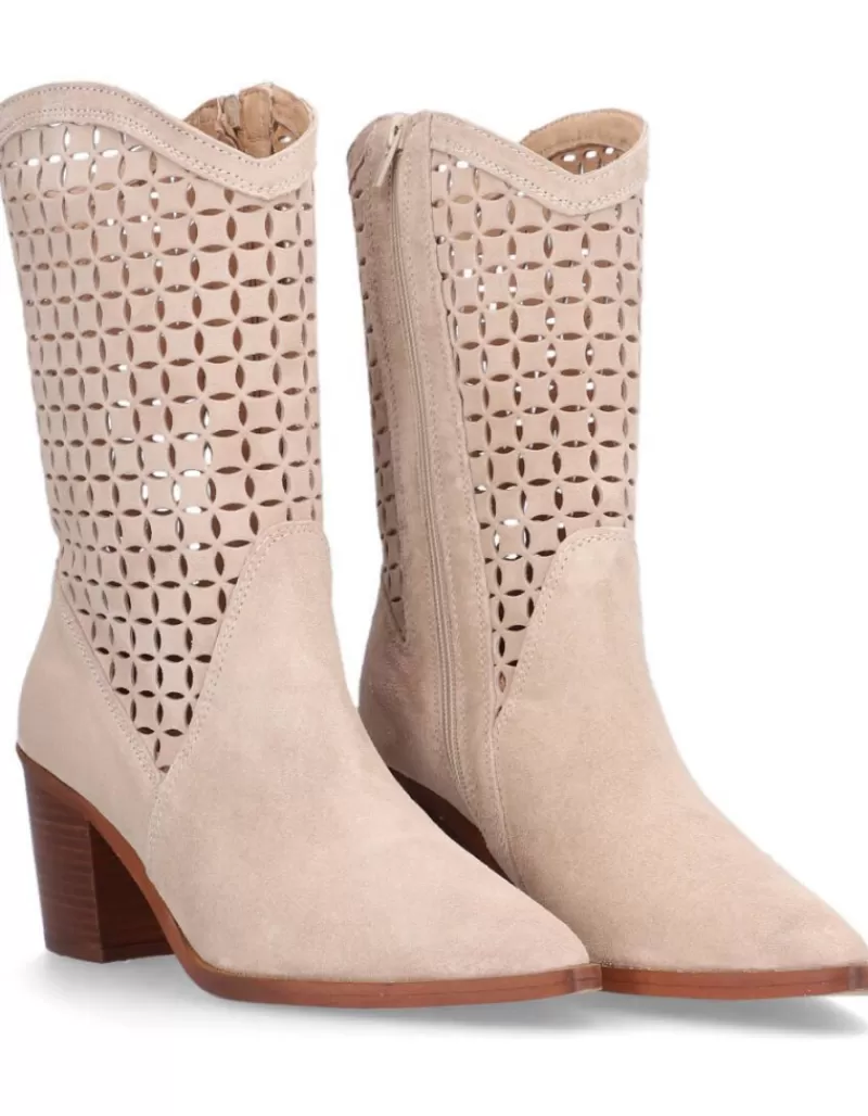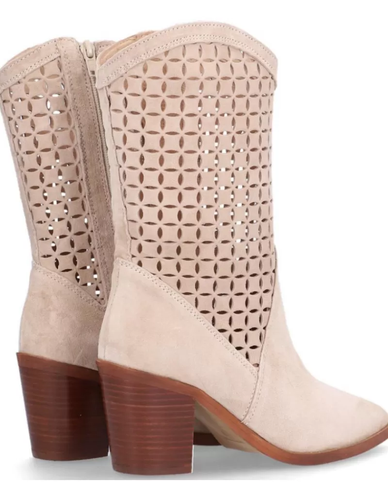 Boots Para Woman Alpe Alina, Fabricado En Piel (Baby Silk Gliter) De Color Lino Con Tacon De 6,5 Cm, Suela Antideslizante Y Puntera Afilada, Con Cierre Mediante Cremallera Y Cana Medium.
