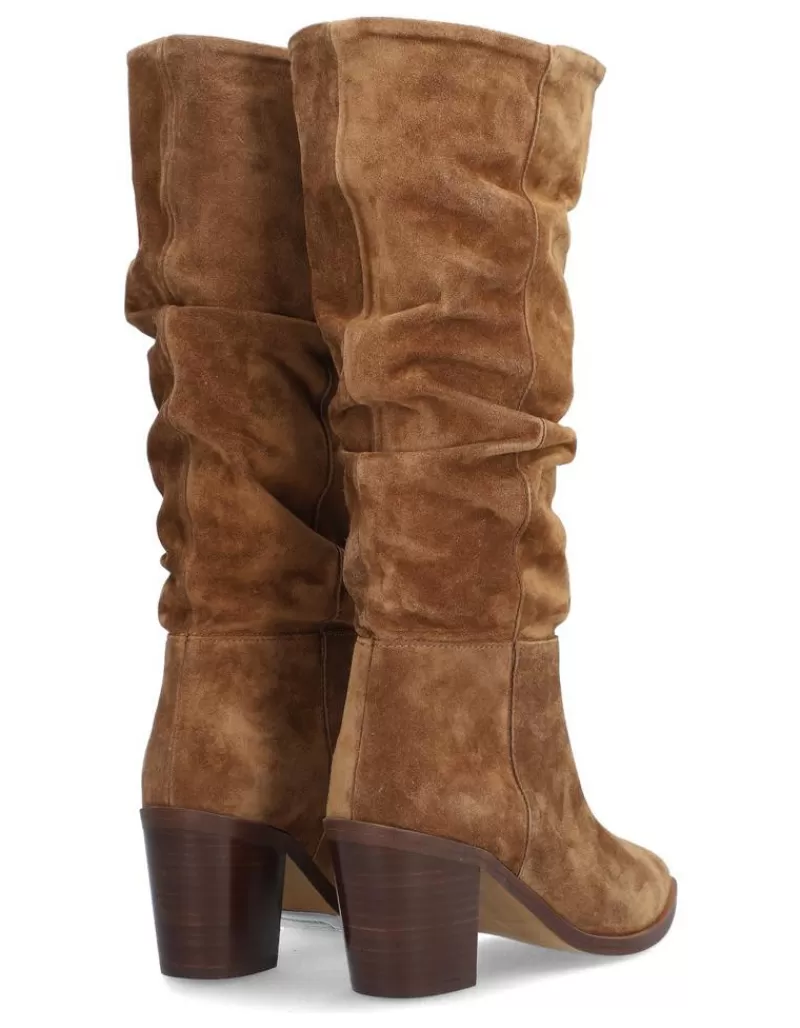 Boots Para Woman Alpe Alina, Fabricado En Piel (Baby Silk Gliter) De Color Cuero Con Tacon De 6,5 Cm, Suela Antideslizante Y Puntera Afilada, Sin Cierre Y Cana Long.