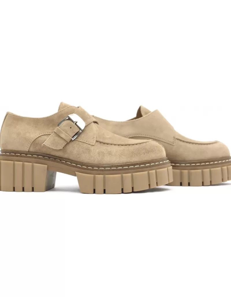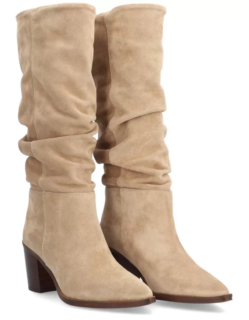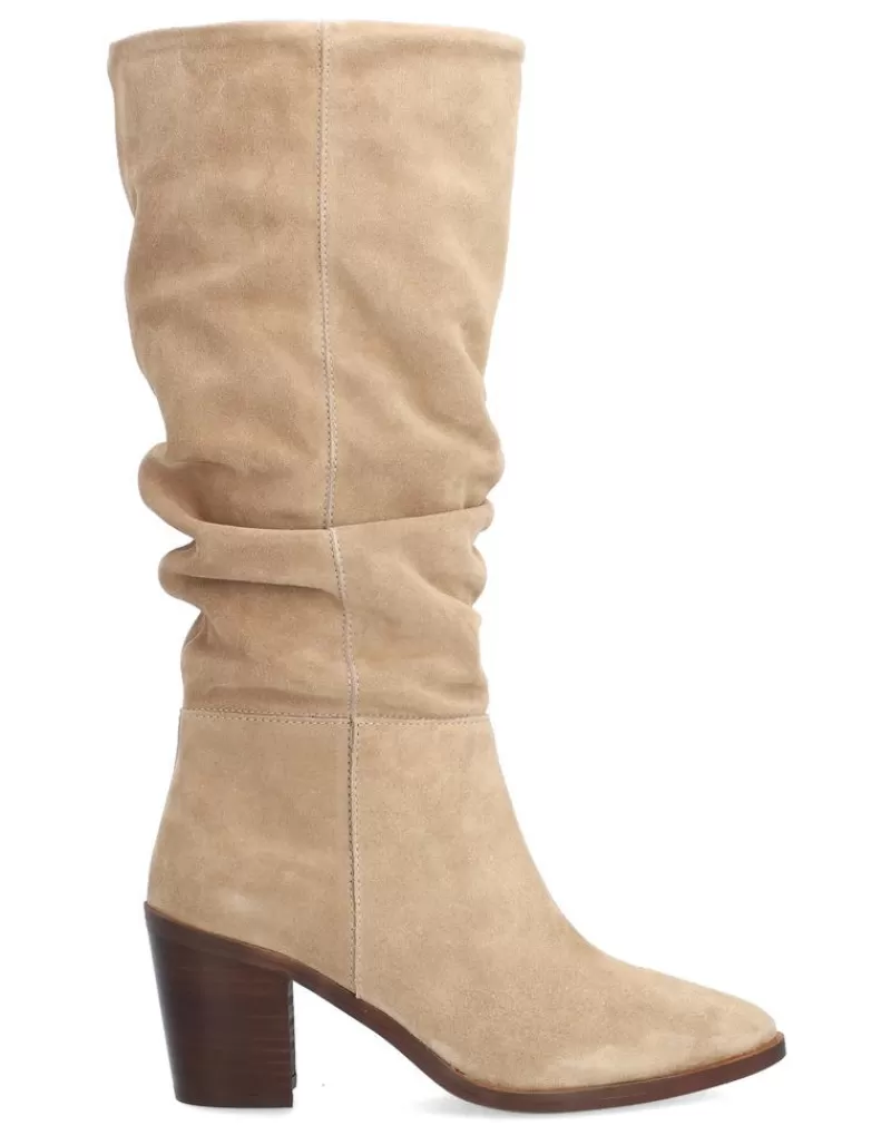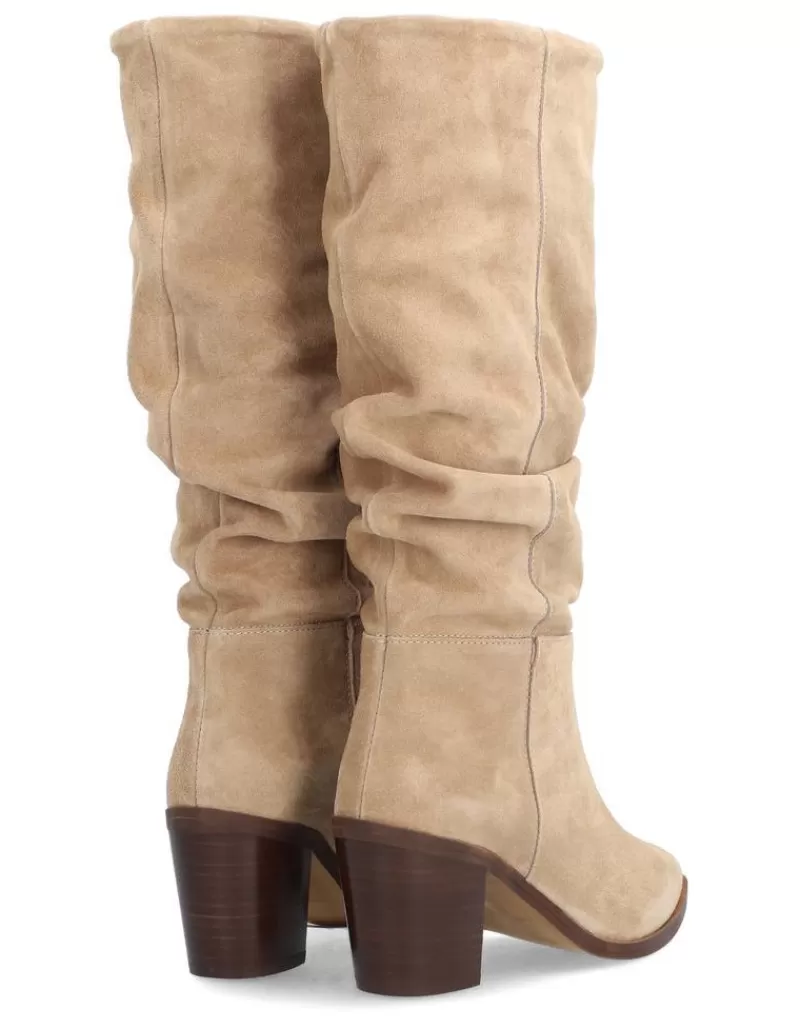 Boots Para Woman Alpe Alina, Fabricado En Piel (Baby Silk Gliter) De Color Noisette Con Tacon De 6,5 Cm, Suela Antideslizante Y Puntera Afilada, Sin Cierre Y Cana Long.