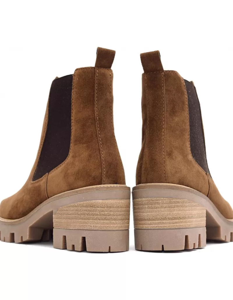 Botin Para Mujer Alpe Amelie, Fabricado En Piel (Baby Silk) De Color Cuero Con Tacon De 6 Cm, Suela Antideslizante Y Puntera Redonda, Sin Cierre Y Cana Baja.