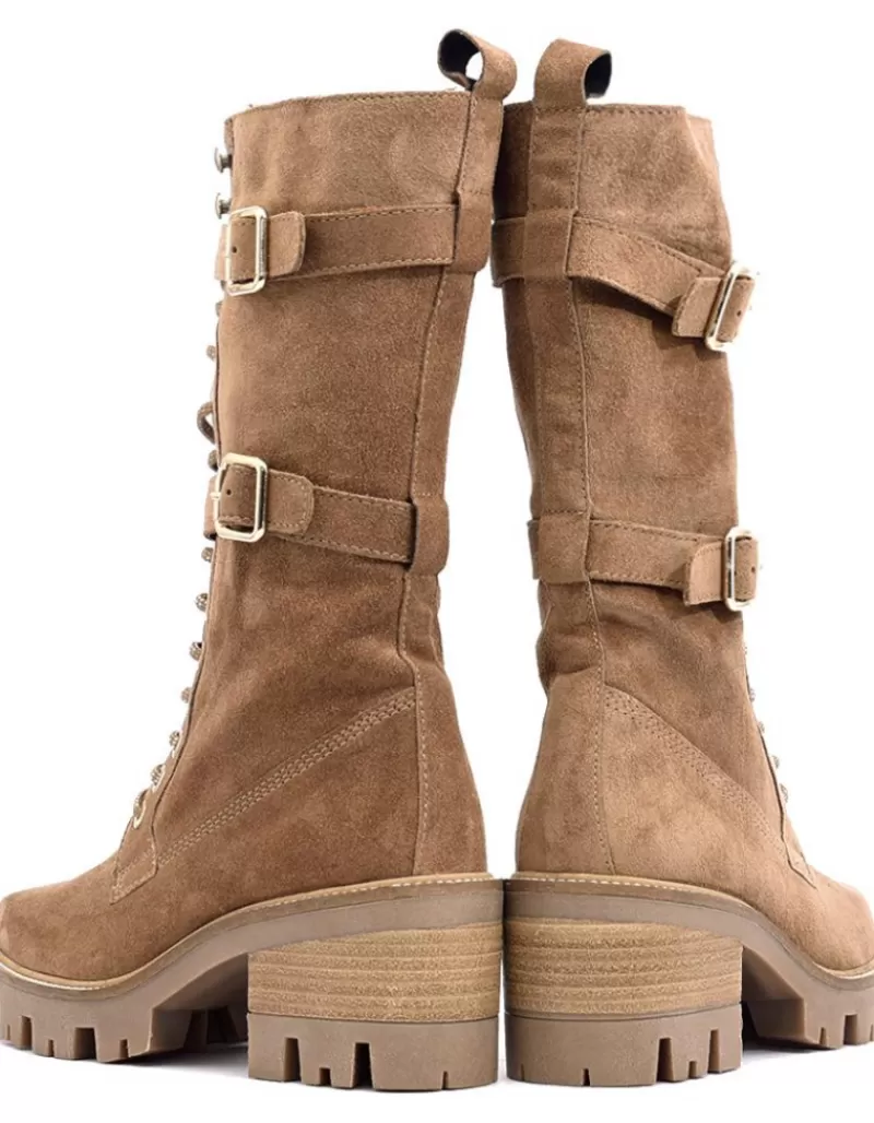 Bota Para Mujer Alpe Amelie, Fabricada En Piel (Baby Silk) De Color Bryce Con Tacon De 6 Cm, Suela Antideslizante Y Puntera Redonda, Con Cierre Mediante Cremallera Y Cana Alta.