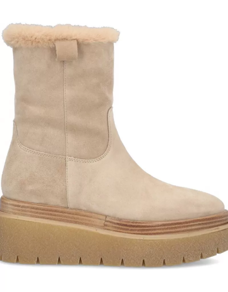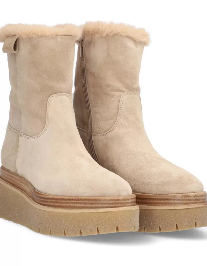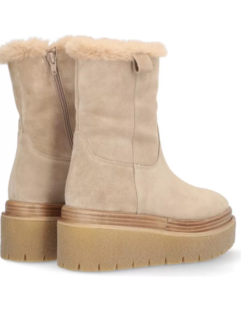 Boots Para Woman Alpe Amiri, Fabricado En Piel (Baby Silk Gliter) De Color Noisette Con Plataforma De 4 Cm, Suela Antideslizante Y Puntera Rounded, Con Cierre Mediante Cremallera Y Cana Low.