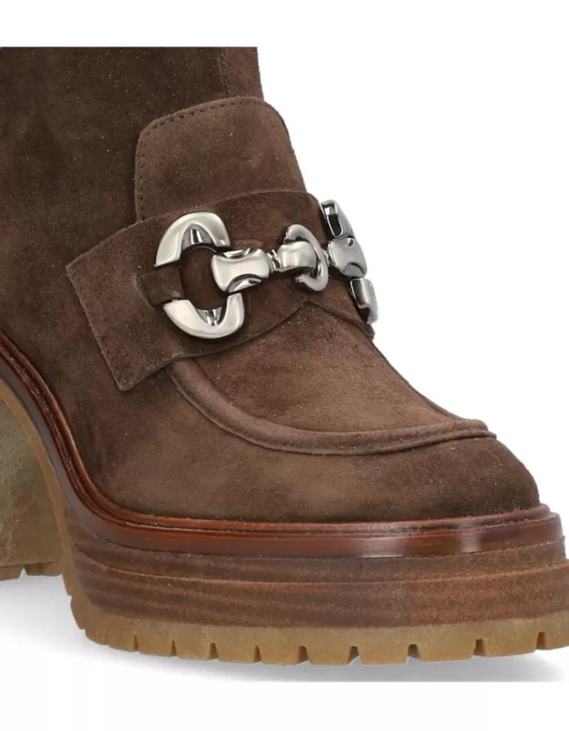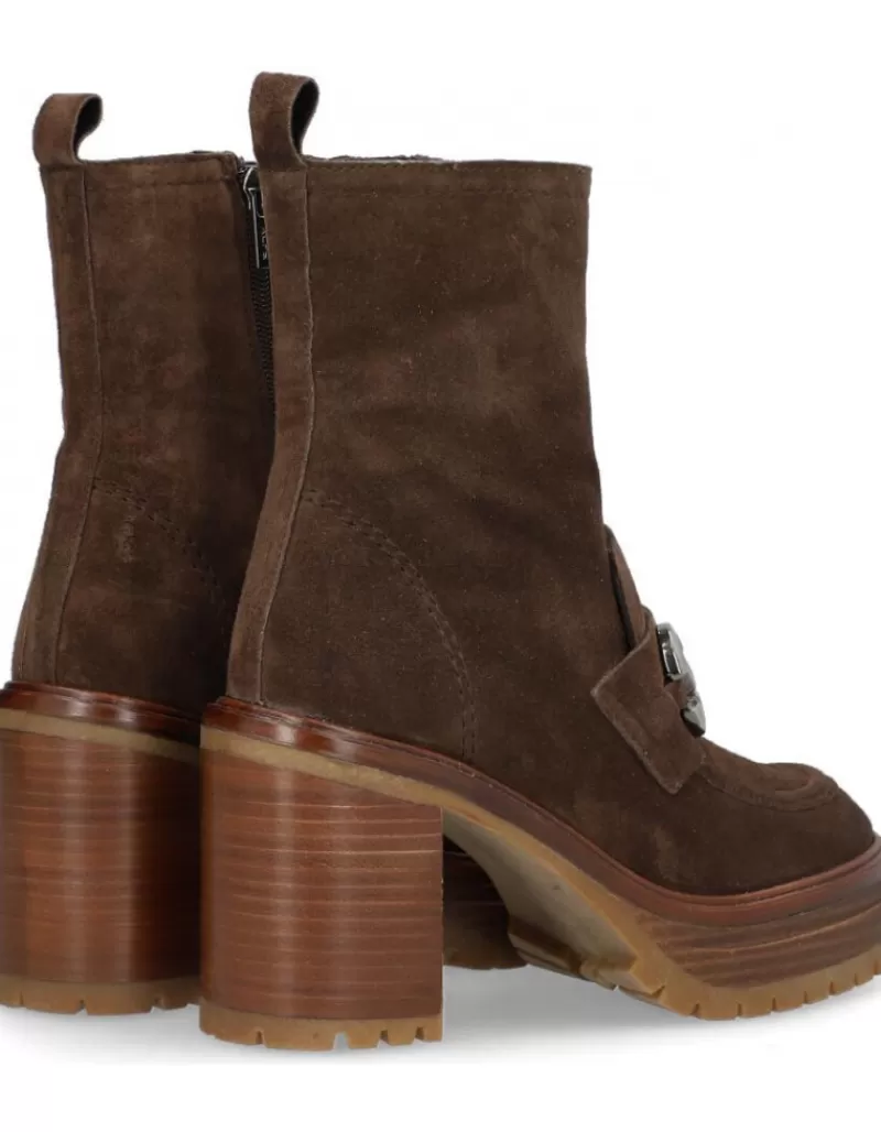 Ankle Boots Para Woman Alpe Anima, Fabricado En Piel (Baby Silk Gliter) De Color Arabica Con Tacon De 8,5 Cm, Suela Antideslizante Y Puntera Rounded, Con Cierre Mediante Cremallera Y Cana Low.
