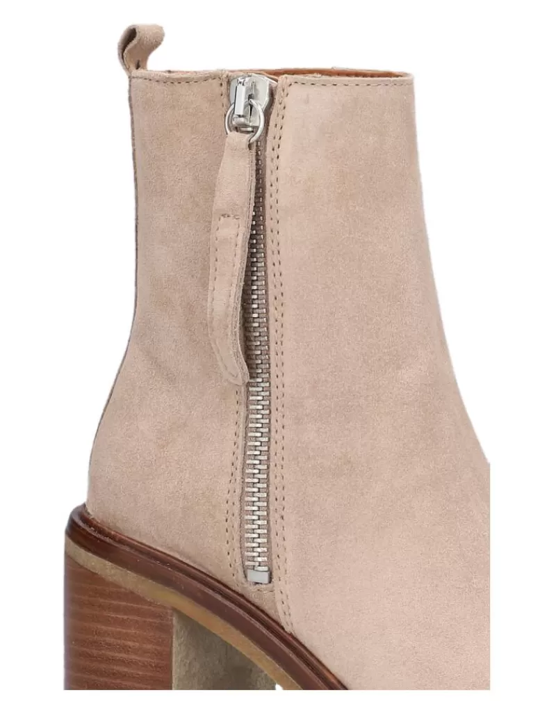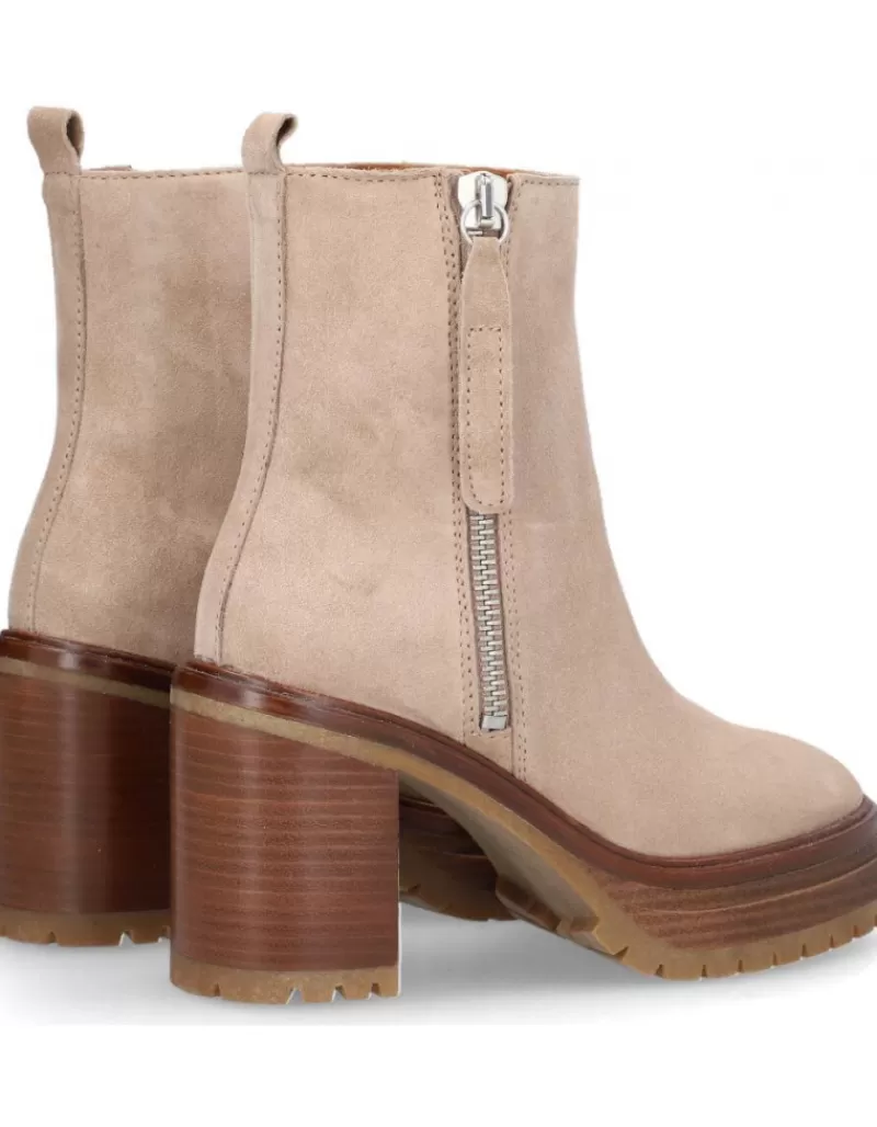 Ankle Boots Para Woman Alpe Anima, Fabricado En Piel (Baby Silk Gliter) De Color Noisette Con Tacon De 8,5 Cm, Suela Antideslizante Y Puntera Rounded, Con Cierre Mediante Cremallera Y Cana Low.