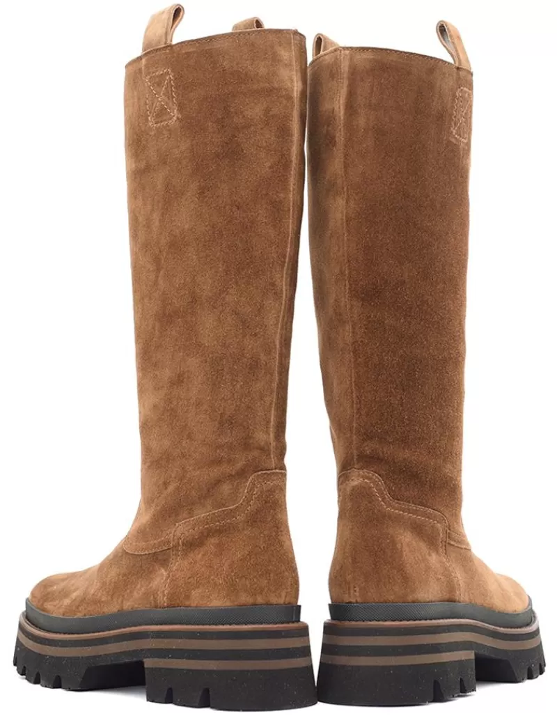 Bota Para Mujer Alpe Aspen, Fabricada En Piel (Baby Silk) De Color Cuero Sin Tacon, Suela Antideslizante Y Puntera Redonda, Sin Cierre Y Cana Alta.