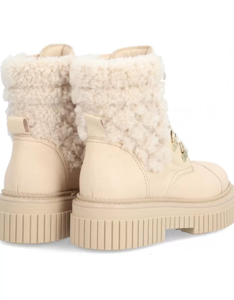 Bota Para Mujer Alpe Bimba, Fabricada En Piel (Bufalo Gordon) De Color Arena Con Plataforma De 5 Cm, Suela Antideslizante Y Puntera Redonda, Con Cierre Mediante Cordon Y Cana Media.
