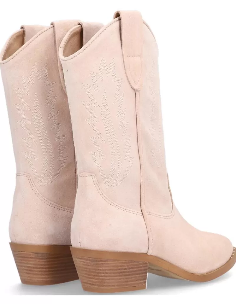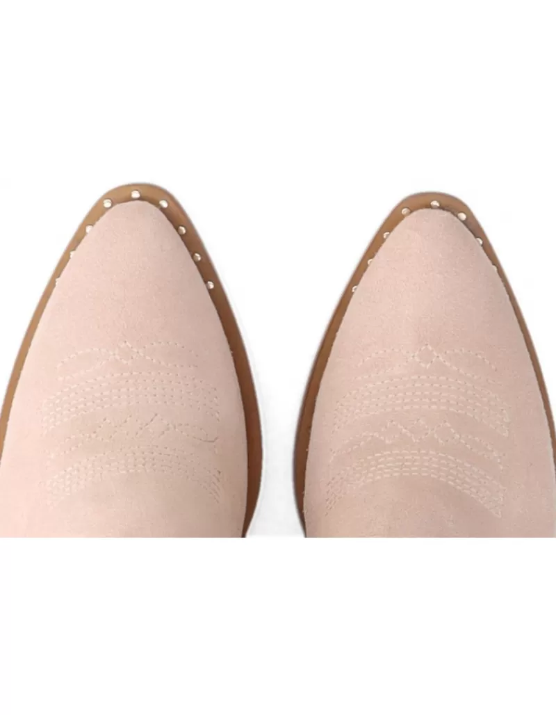 Boots Para Woman Alpe Claire, Fabricado En Piel (Baby Silk Gliter) De Color Nude Con Tacon De 4 Cm, Suela Antideslizante Y Puntera Afilada, Sin Cierre Y Cana Medium.