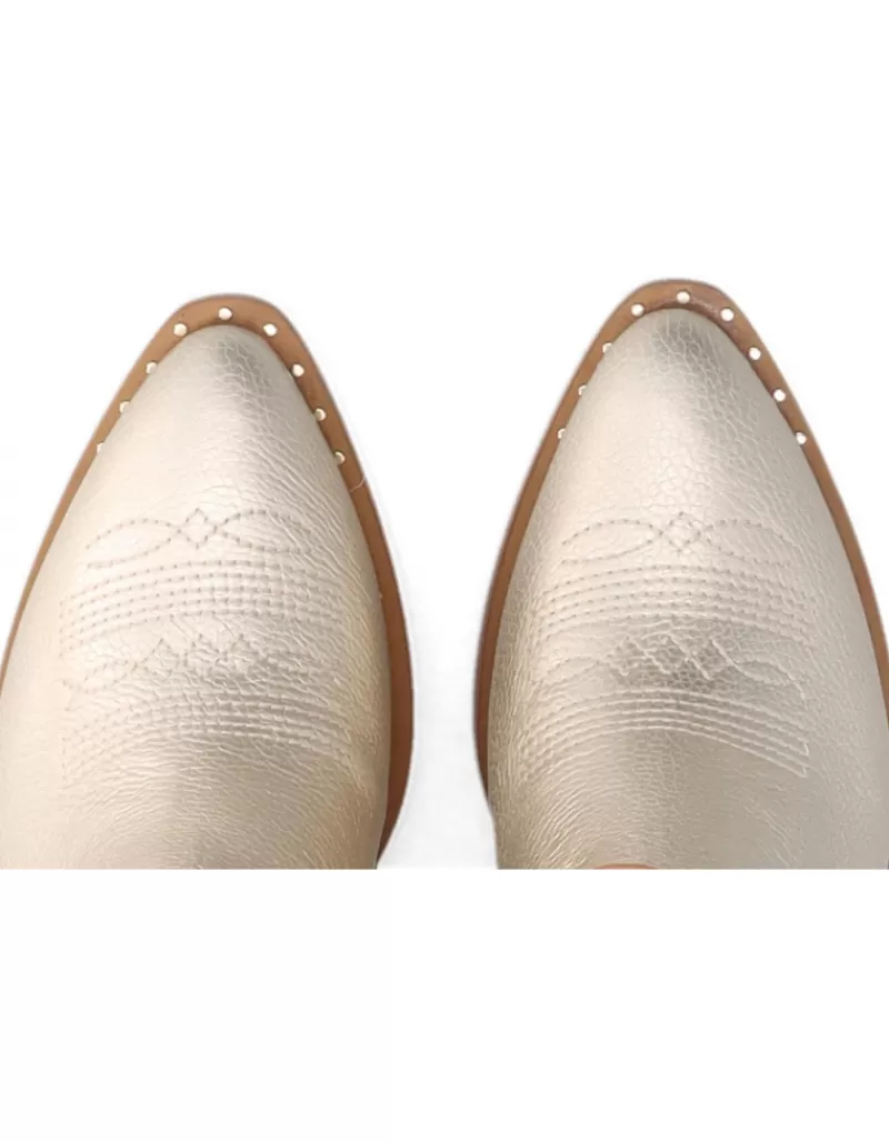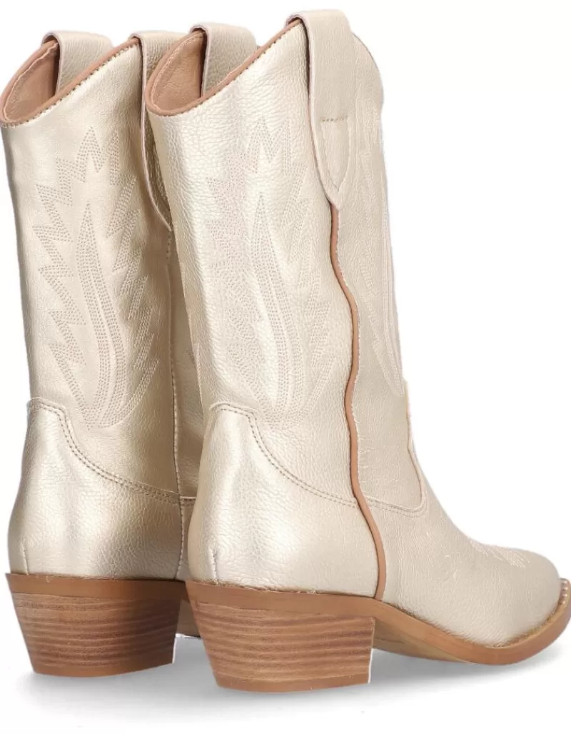 Boots Para Woman Alpe Claire, Fabricado En Piel (Gibson) De Color Platino Con Tacon De 4 Cm, Suela Antideslizante Y Puntera Afilada, Sin Cierre Y Cana Medium.