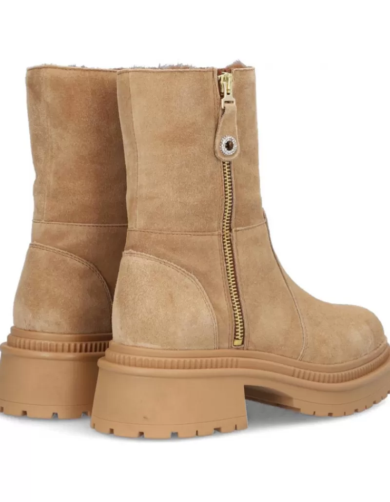 Boots Para Woman Alpe Clay, Fabricado En Piel (Baby Silk Gliter) De Color Camel Con Tacon De 3 Cm, Suela Antideslizante …