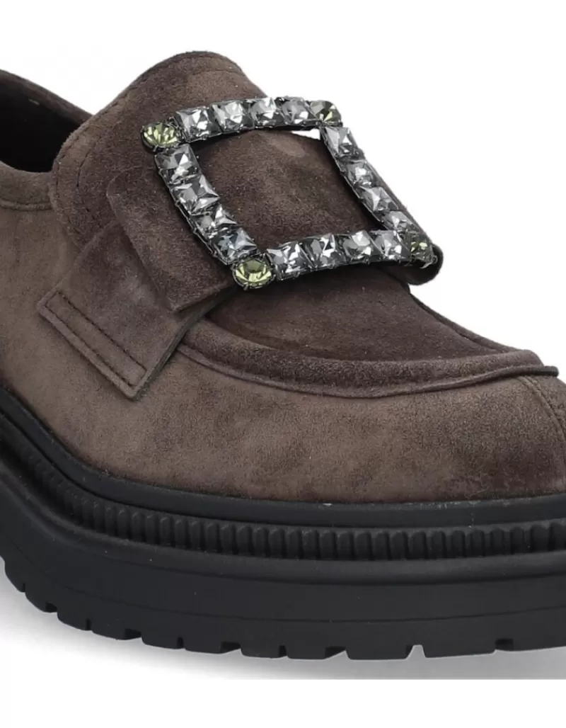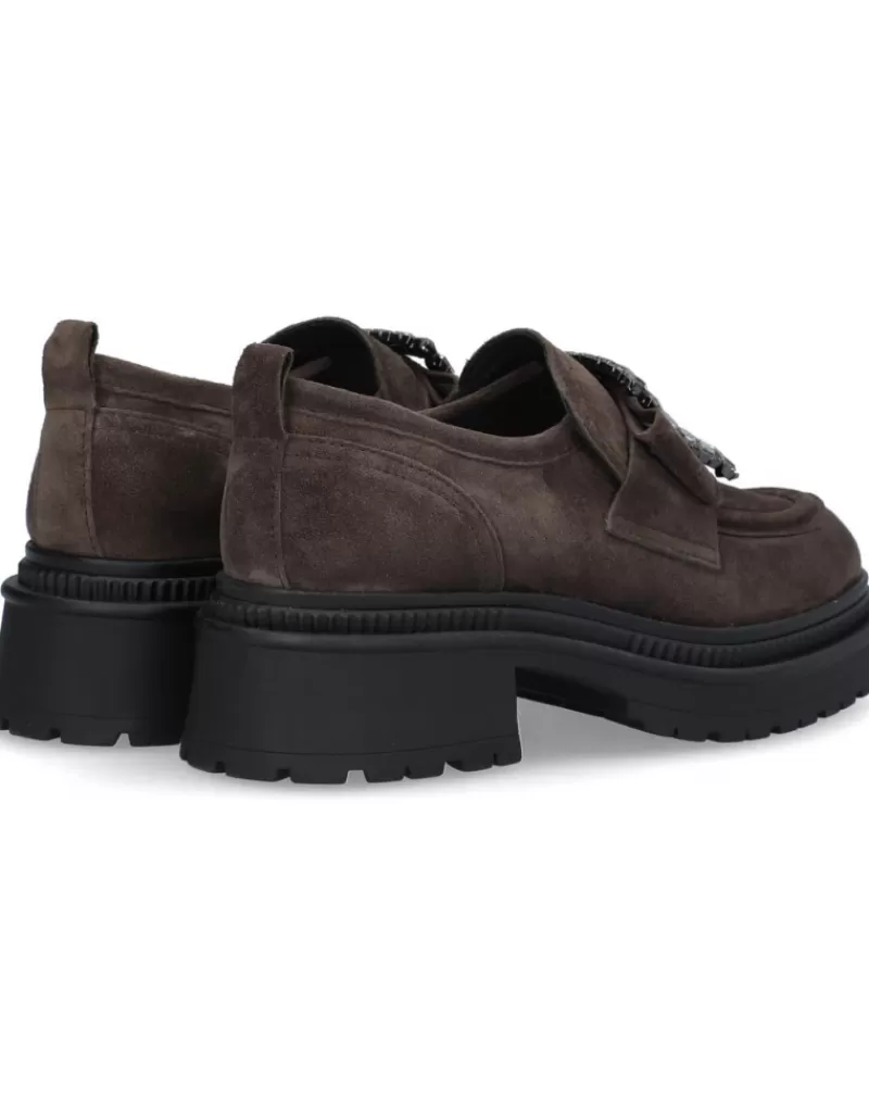 Shoes Para Woman Alpe Clay, Fabricado En Piel (Baby Silk Gliter) De Color Iman Con Tacon De 3 Cm, Suela Antideslizante Y Puntera Rounded, Sin Cierre.