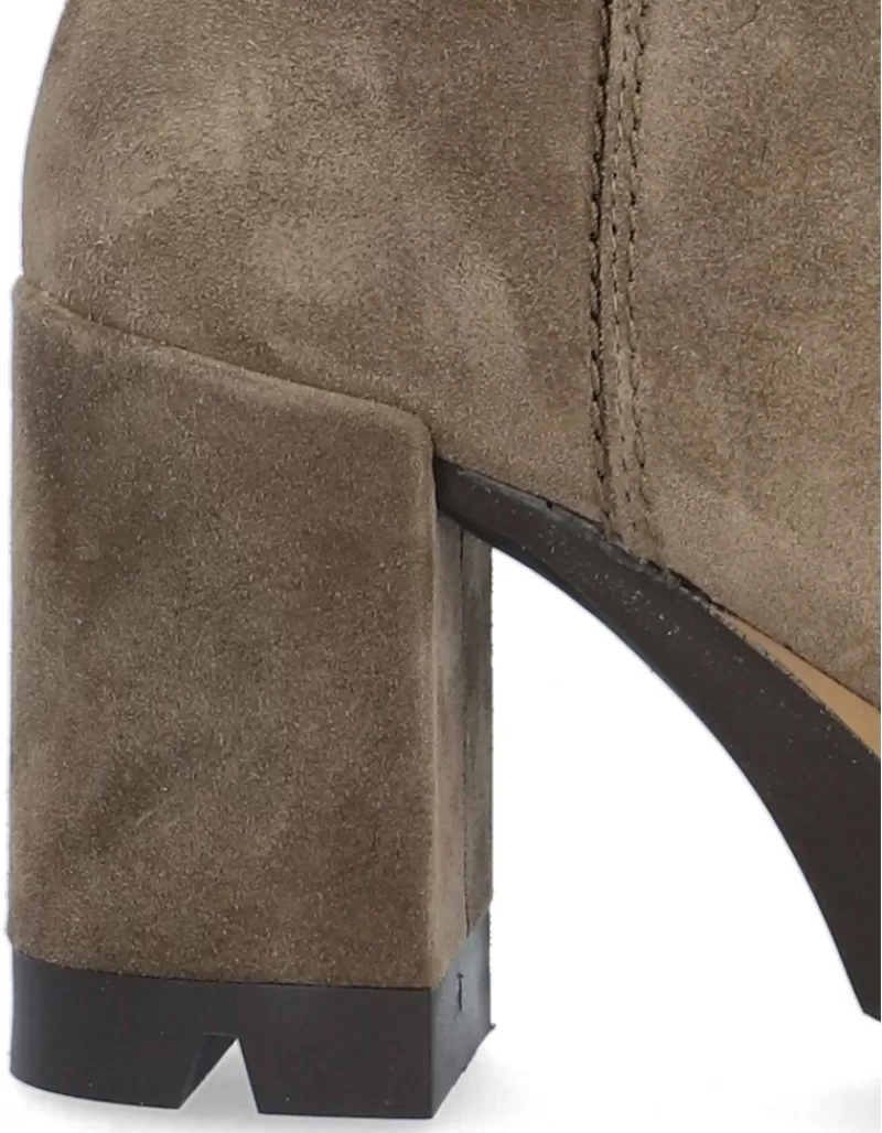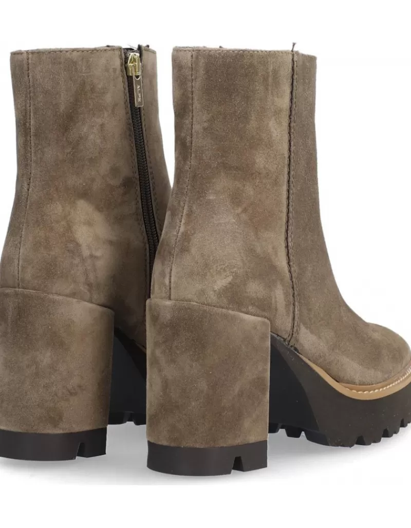 Ankle Boots Para Woman Alpe Colette, Fabricado En Piel (Baby Silk Gliter) De Color Sander Con Tacon De 7 Cm, Suela Antideslizante Y Puntera Rounded, Con Cierre Mediante Cremallera Low.
