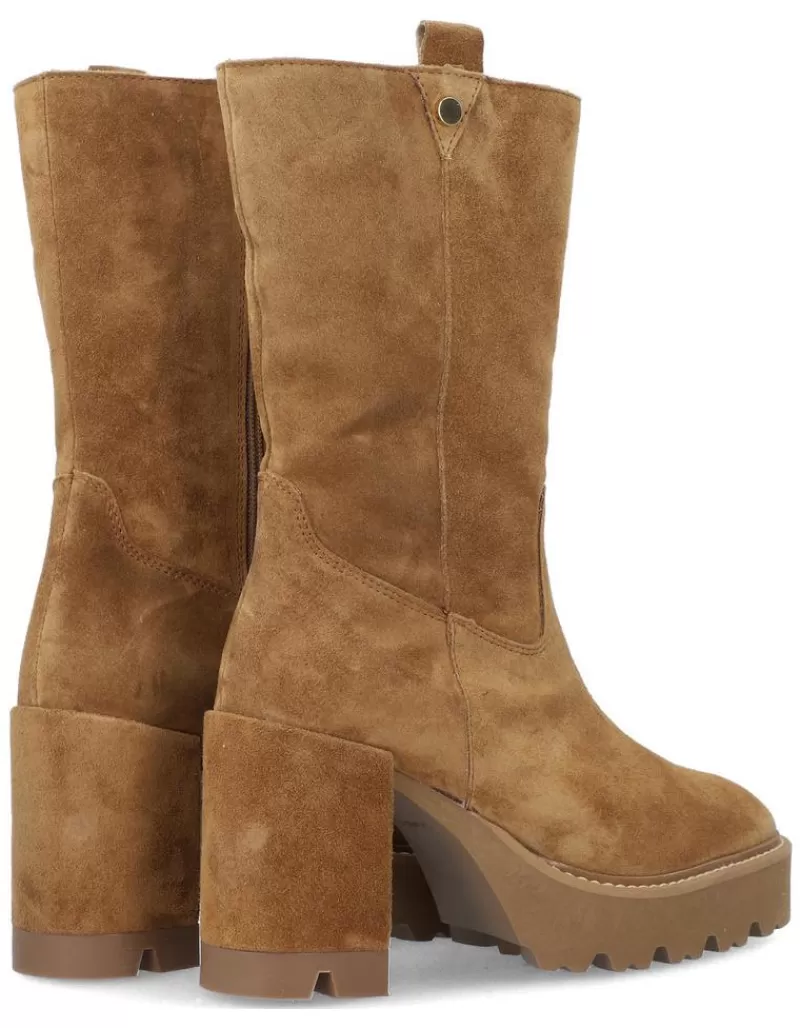 Bota Para Mujer Alpe Colette, Fabricada En Piel (Baby Silk) De Color Birra Con Tacon De 7 Cm, Suela Antideslizante Y Puntera Redonda, Con Cierre Mediante Cremallera Y Cana Media.