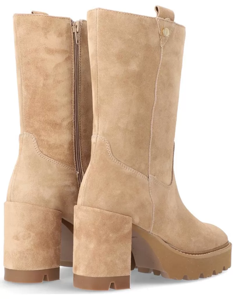 Bota Para Mujer Alpe Colette, Fabricada En Piel (Baby Silk) De Color Noisette Con Tacon De 7 Cm, Suela Antideslizante Y Puntera Redonda, Con Cierre Mediante Cremallera Y Cana Alta.