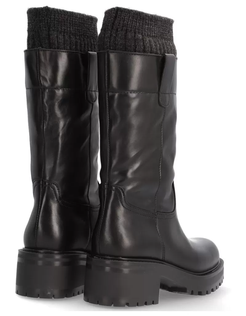 Bota Para Mujer Alpe Cool, Fabricada En Piel (Becerro) De Color Negro Con Tacon De 5 Cm, Suela Antideslizante Y Puntera Redonda, Sin Cierre Y Cana Media.