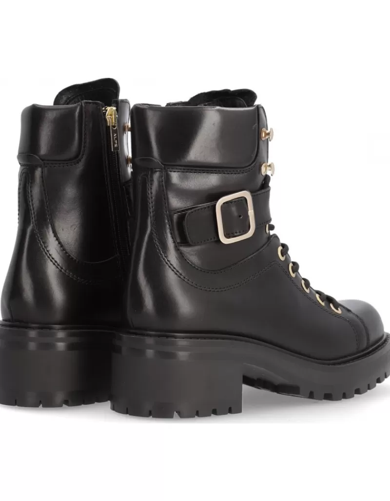 Bota Para Mujer Alpe Cool, Fabricada En Piel (Becerro) De Color Negro Con Tacon De 5 Cm, Suela Antideslizante Y Puntera Redonda, Con Cierre Mediante Cordon Y Cana Media.