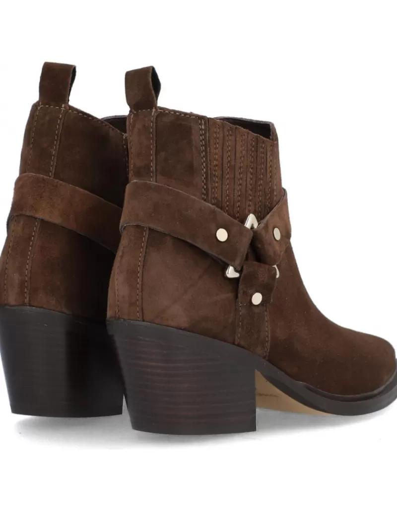 Botin Para Mujer Alpe Country, Fabricado En Piel (Baby Silk) De Color Arabica Con Tacon Asimetrico De 5 Cm, Suela Antideslizante Y Puntera Afilada, Con Cierre Mediante Cremallera Y Cana Baja.
