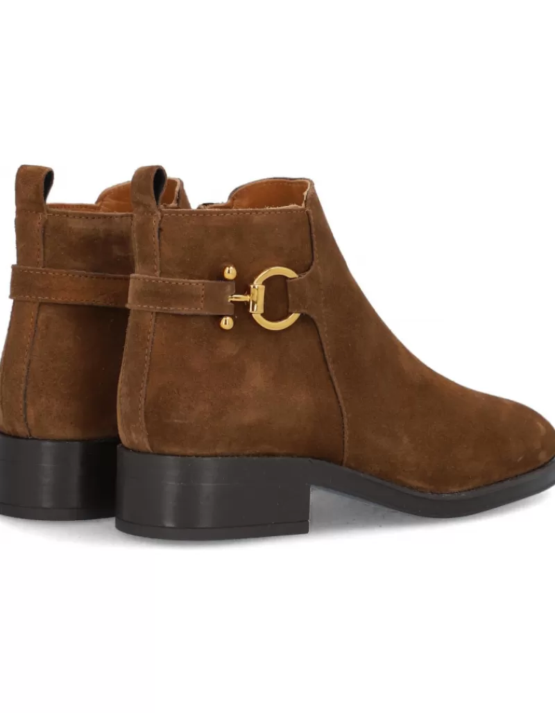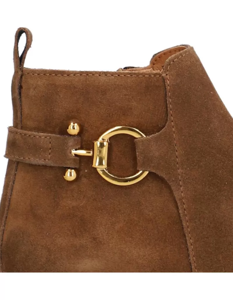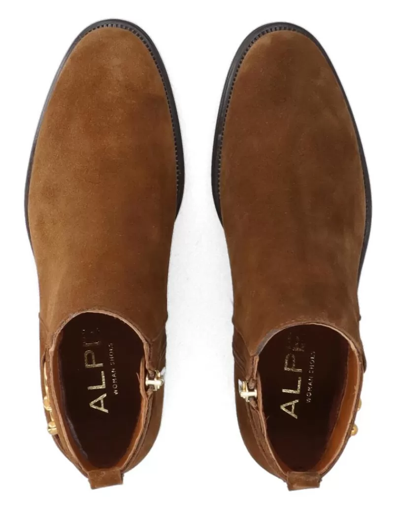 Ankle Boots Para Woman Alpe Couture, Fabricado En Piel (Baby Silk Gliter) De Color Cuero Con Tacon De 3,5 Cm, Suela Antideslizante Y Puntera Rounded, Con Cierre Mediante Cremallera Y Cana Low.