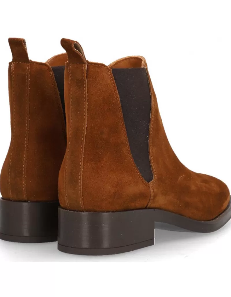 Ankle Boots Para Woman Alpe Couture, Fabricado En Piel (Baby Silk Gliter) De Color Cuero Con Tacon De 3,5 Cm, Suela Antideslizante Y Puntera Rounded, Sin Cierre Y Cana Low.