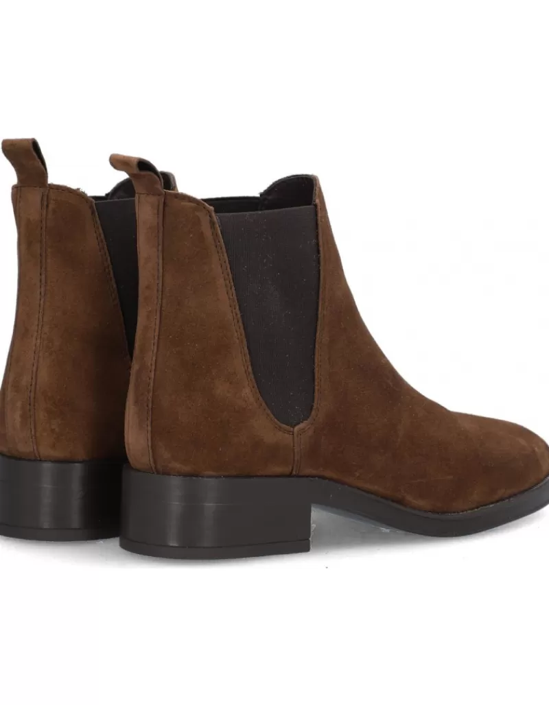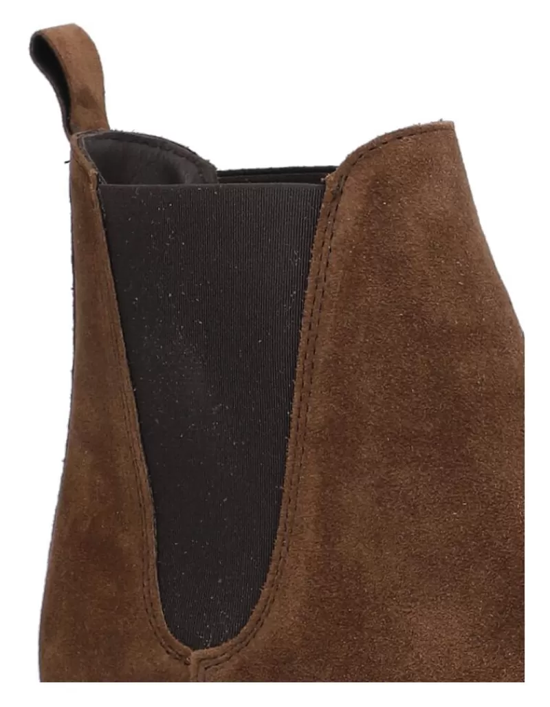 Ankle Boots Para Woman Alpe Couture, Fabricado En Piel (Baby Silk Gliter) De Color Dark Brown Con Tacon De 3,5 Cm, Suela Antideslizante Y Puntera Rounded, Sin Cierre Y Cana Low.