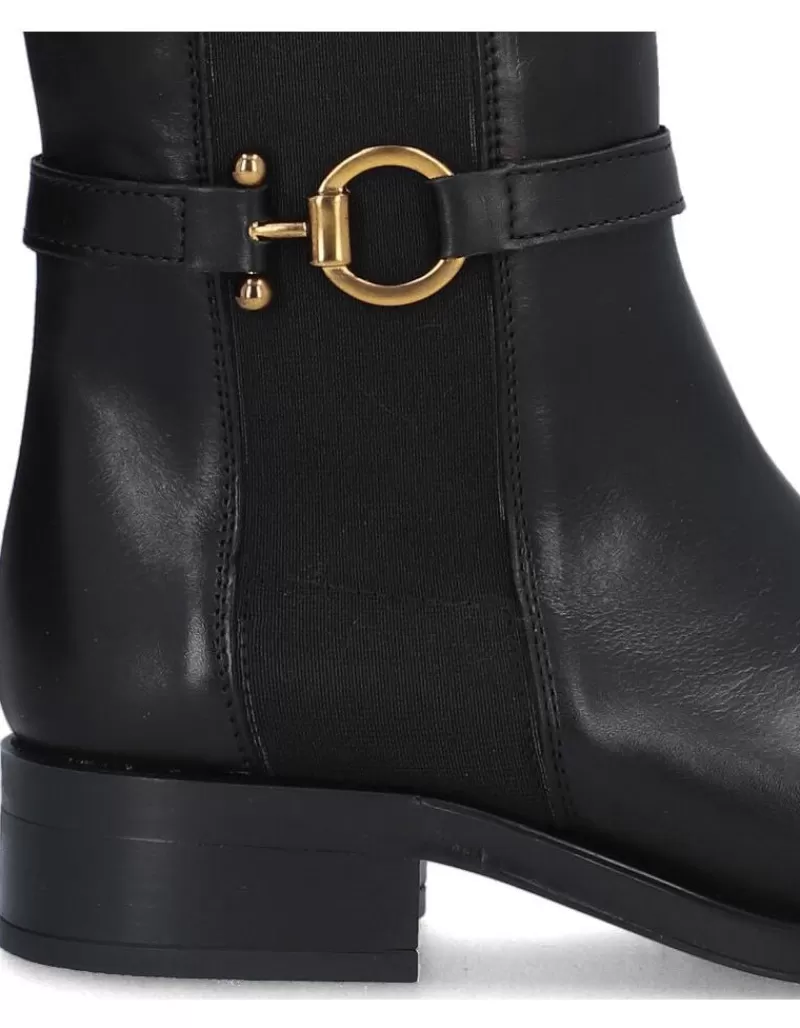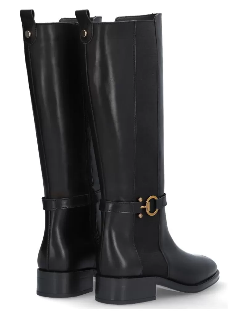 Boots Para Woman Alpe Couture, Fabricado En Piel (Becerro) De Color Black Con Tacon De 3,5 Cm, Suela Antideslizante Y Puntera Rounded, Con Cierre Mediante Cremallera Y Cana Long.