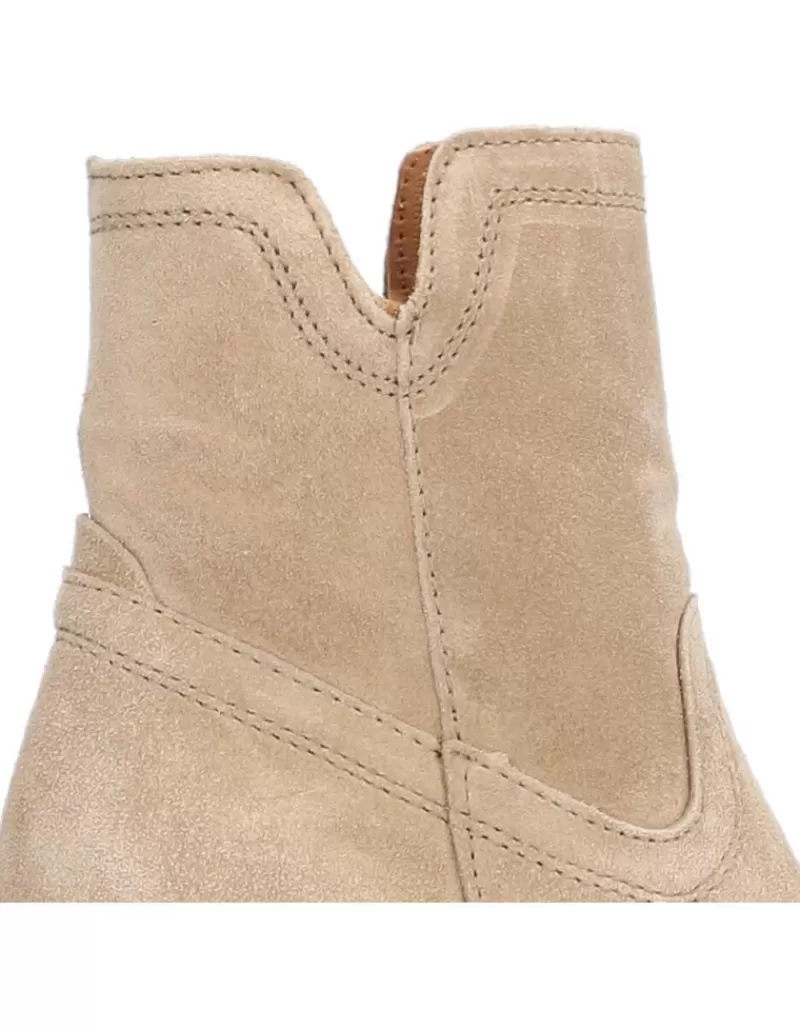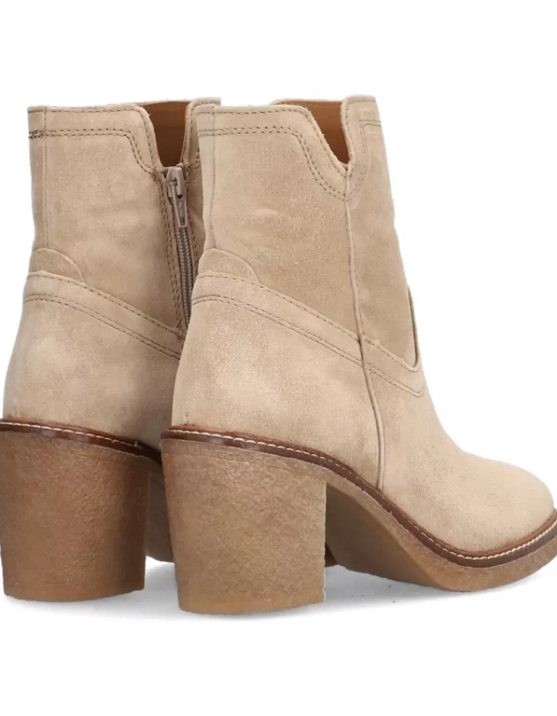 Ankle Boots Para Woman Alpe Crep, Fabricado En Piel (Baby Silk Gliter) De Color Noisette Con Tacon De 8 Cm, Suela Antideslizante Y Puntera Rounded, Con Cierre Mediante Cremallera Y Cana Low.