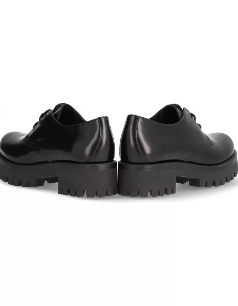 Zapato Para Mujer Alpe Eden, Fabricado En Piel (Piel) De Color Negro Con Sin Tacon De 2,5 Cm, Suela Pu Y Puntera Redonda, Con Cierre Mediante Cordon.