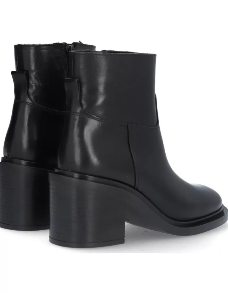 Ankle Boots Para Woman Alpe Evolet, Fabricado En Piel (Becerro) De Color Black Con Tacon De 6,5 Cm, Suela Antideslizante Y Puntera Rounded, Con Cierre Mediante Cremallera Y Cana Low.