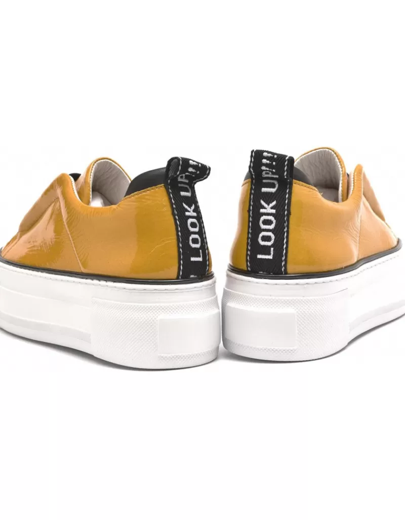 Sneaker Casual Para Mujer Alpe First, Fabricado En Piel (Piel) De Color Mostaza Sin Tacon, Suela Pu Y Puntera Redonda, Sin Cierre.
