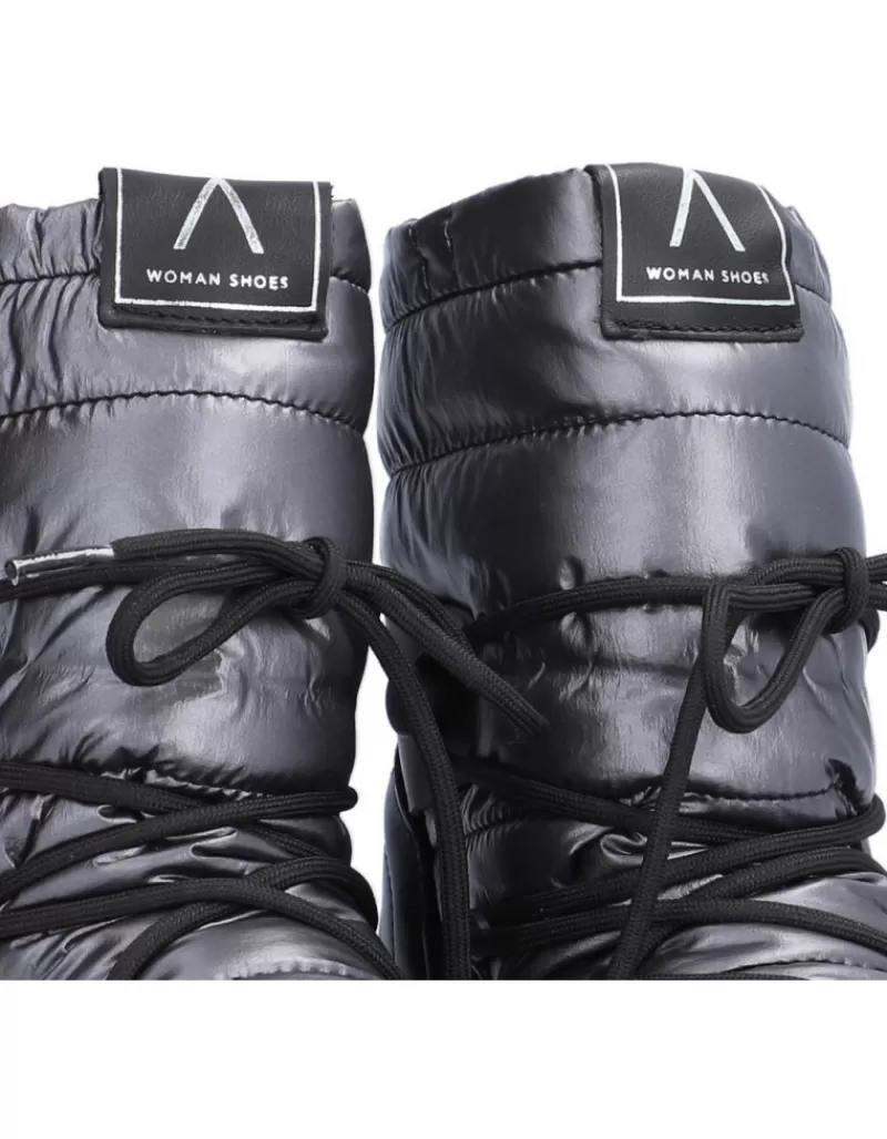 Boots Para Woman Alpe Gia, Fabricado En Piel (Empire) De Color Black Con Tacon De 3,5 Cm, Suela Antideslizante Y Puntera Rounded, Con Cierre Mediante Cordon Medium.