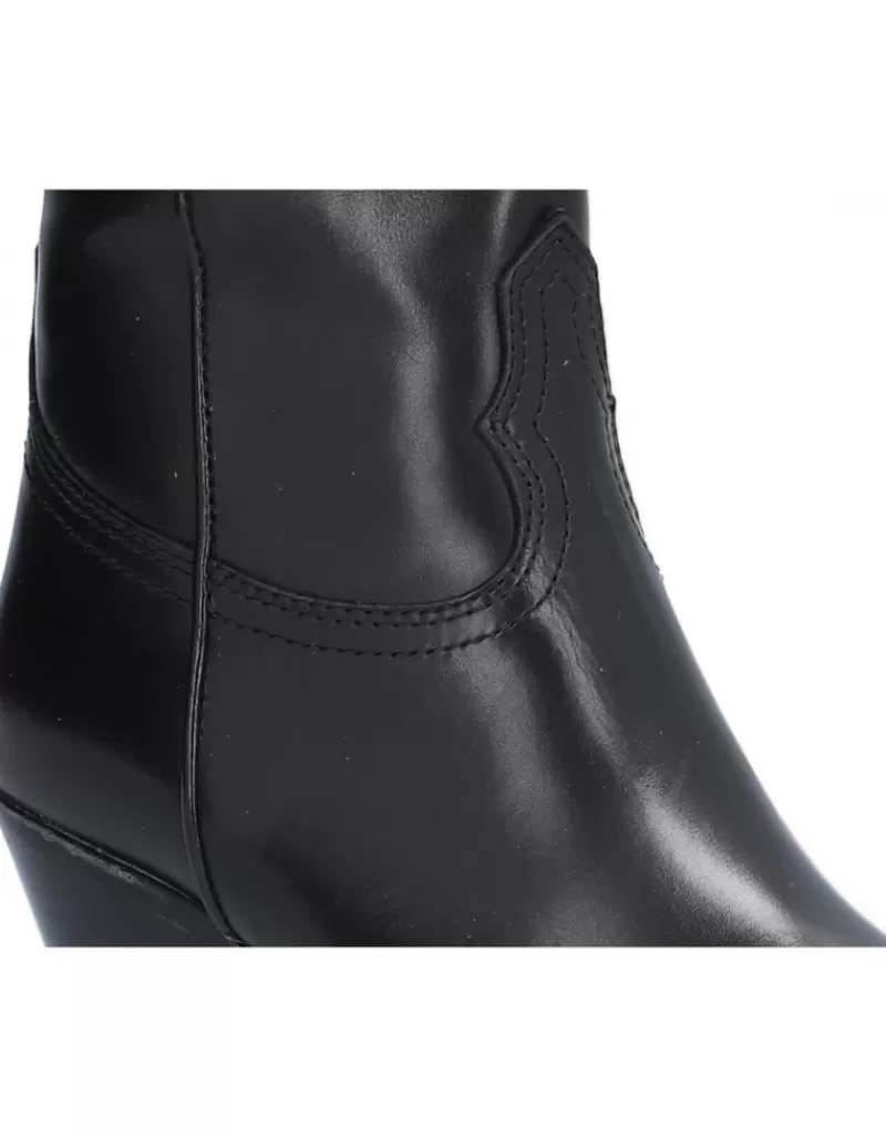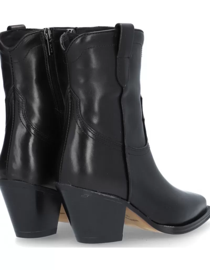 Ankle Boots Para Woman Alpe Givet, Fabricado En Piel (Becerro) De Color Black Con Tacon De 5,5 Cm, Suela Antideslizante Y Puntera Afilada, Con Cierre Mediante Cremallera Y Cana Low.