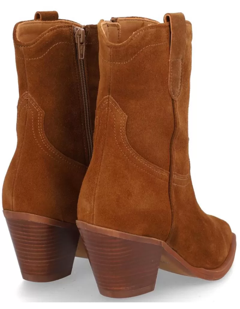 Ankle Boots Para Woman Alpe Givet, Fabricado En Piel (Baby Silk Gliter) De Color Cuero Con Tacon De 5,5 Cm, Suela Antideslizante Y Puntera Afilada, Con Cierre Mediante Cremallera Y Cana Low.