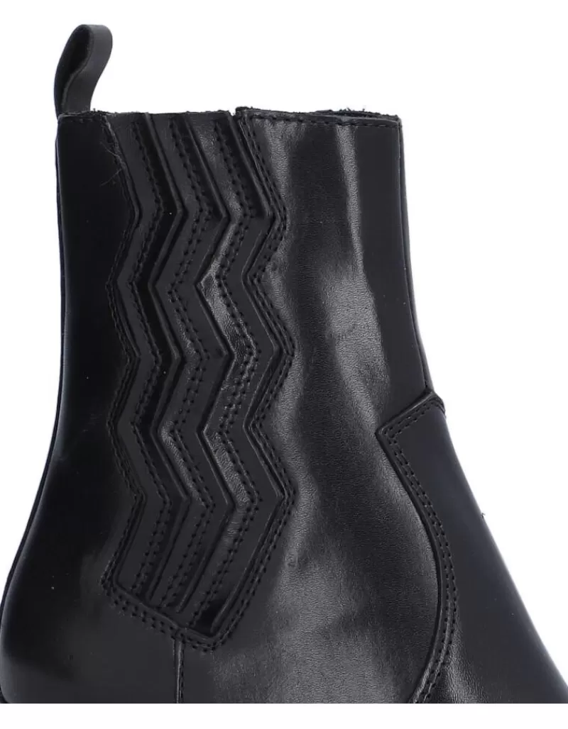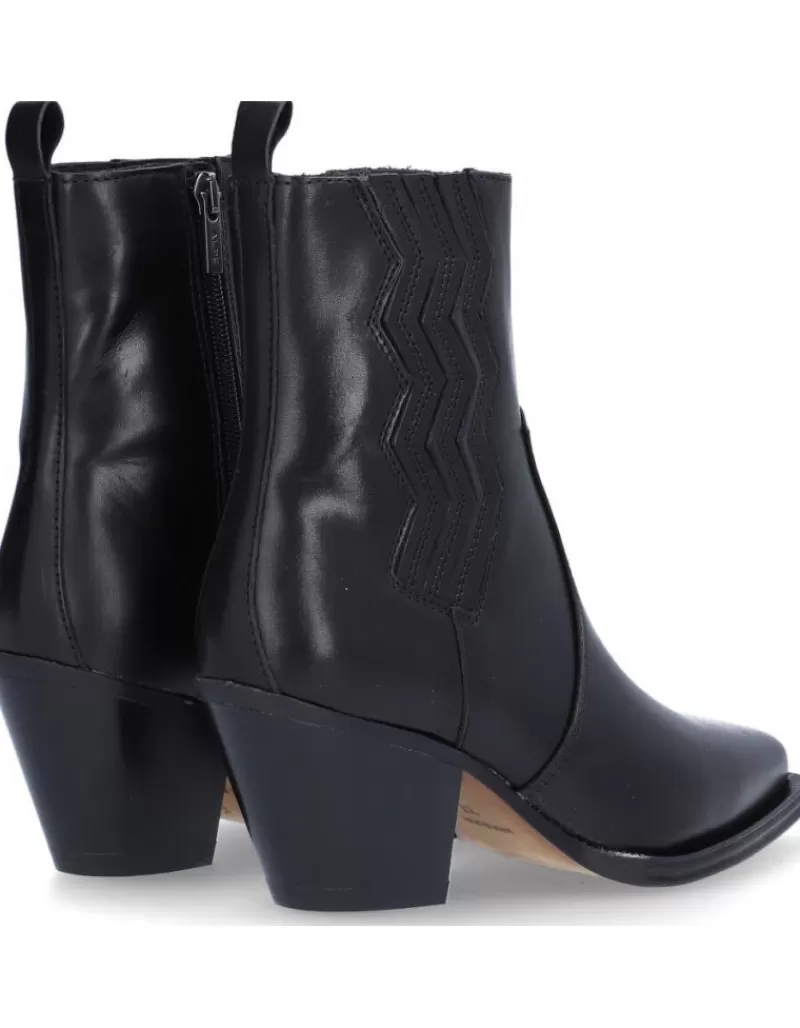 Ankle Boots Para Woman Alpe Givet, Fabricado En Piel (Becerro) De Color Black Con Tacon De 5,5 Cm, Suela Antideslizante Y Puntera Afilada, Con Cierre Mediante Cremallera Y Cana Low.