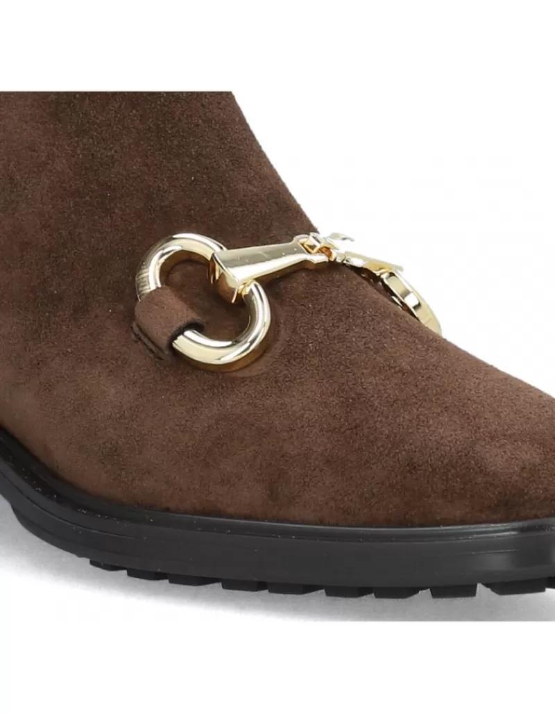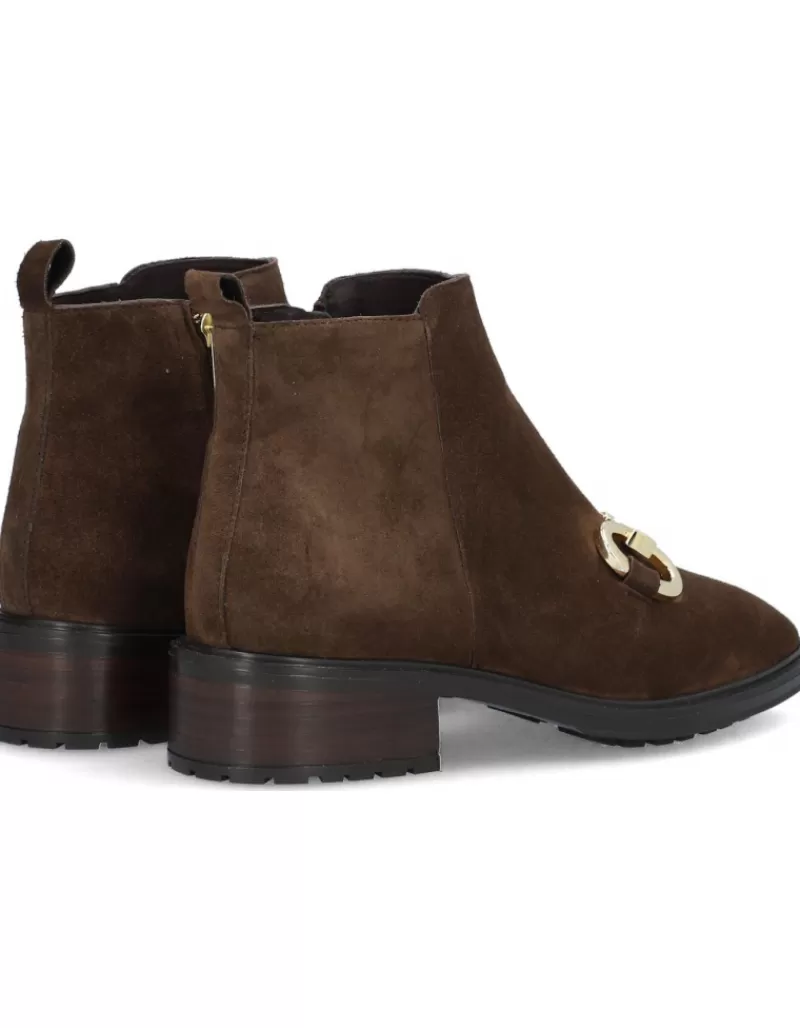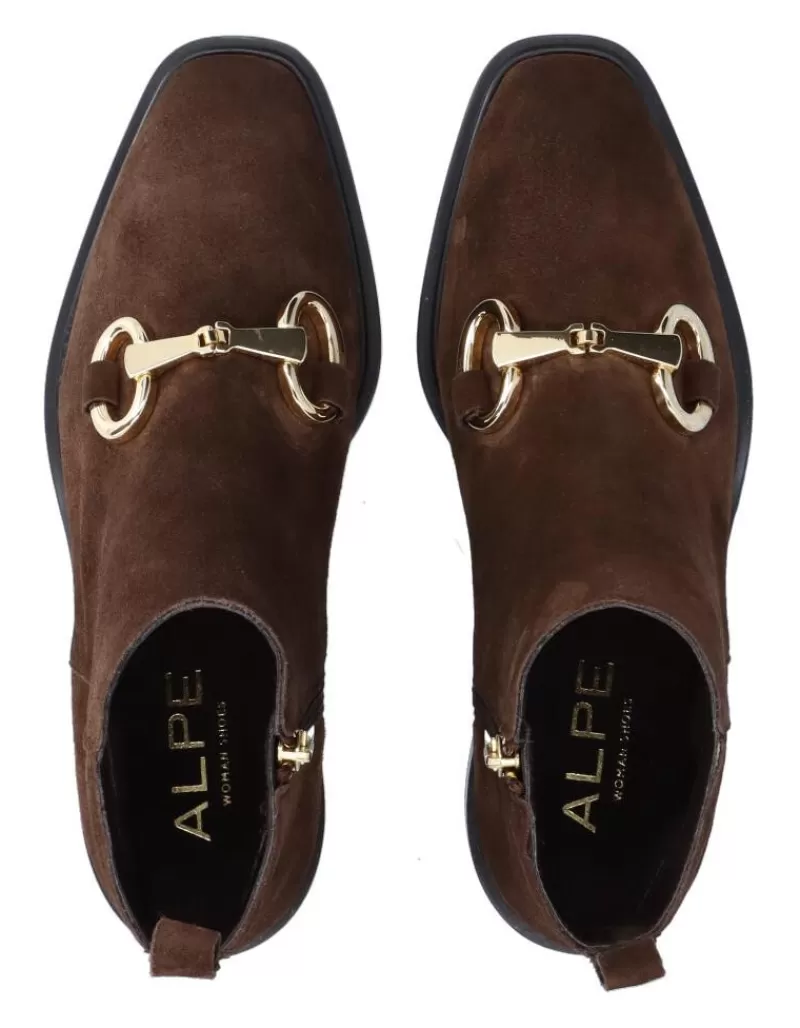Ankle Boots Para Woman Alpe Idaho, Fabricado En Piel (Baby Silk Gliter) De Color Arabica Con Tacon De 3,5 Cm, Suela Antideslizante Y Puntera Rounded, Con Cierre Mediante Cremallera Y Cana Low.