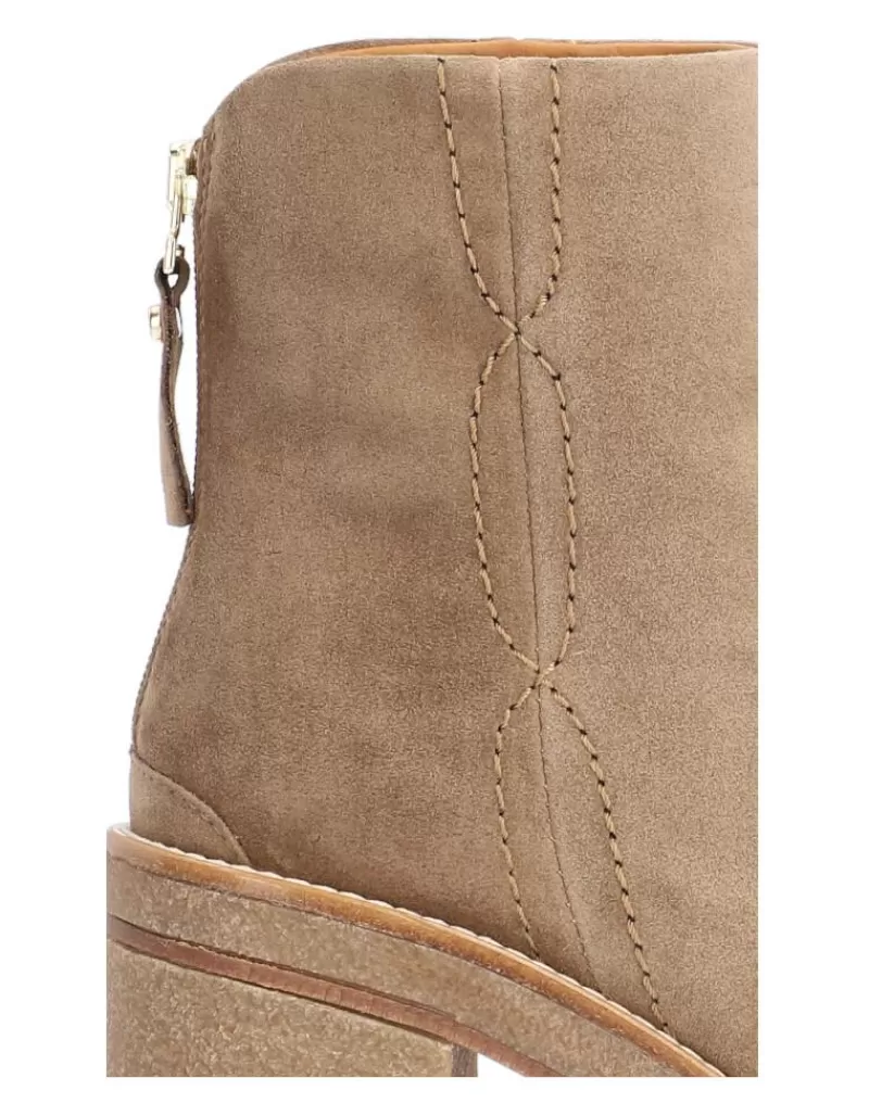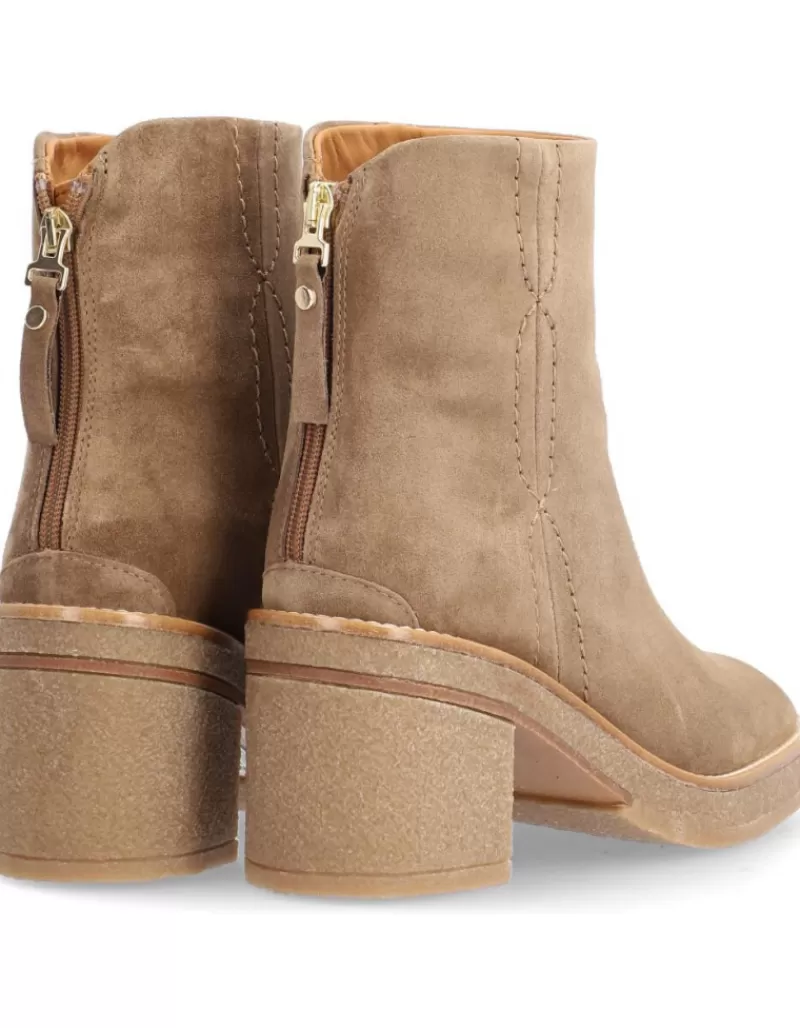 Ankle Boots Para Woman Alpe Janis, Fabricado En Piel (Baby Silk Gliter) De Color Sander Con Tacon De 7,5 Cm, Suela Antideslizante Y Puntera Rounded, Con Cierre Mediante Cremallera Low.