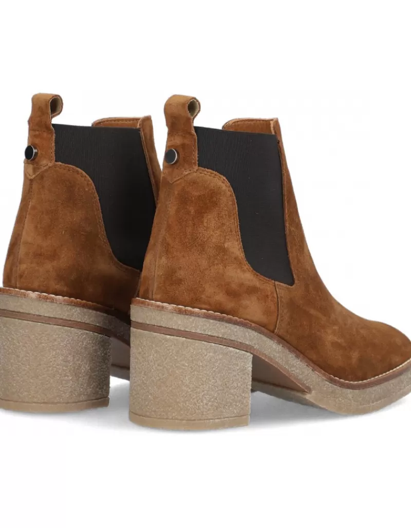 Ankle Boots Para Woman Alpe Janis, Fabricado En Piel (Baby Silk Gliter) De Color Cuero Con Tacon De 7,5 Cm, Suela Antideslizante Y Puntera Rounded, Sin Cierre Low.