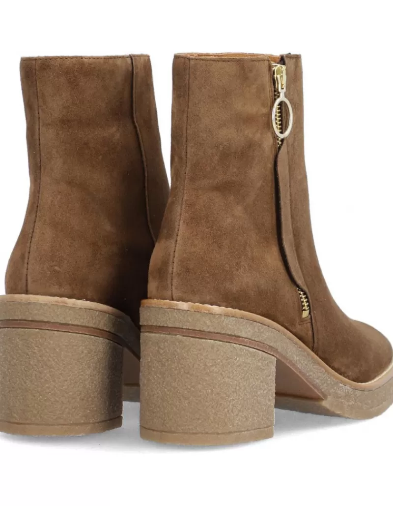Botin Para Mujer Alpe Janis, Fabricado En Piel (Baby Silk) De Color Sandalo Con Tacon De 7,5 Cm, Suela Antideslizante Y Puntera Redonda, Con Cierre Mediante Cremallera Y Cana Baja.