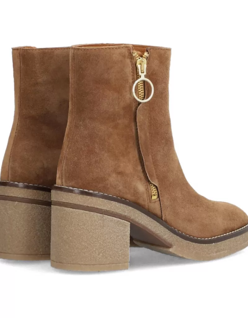 Botin Para Mujer Alpe Janis, Fabricado En Piel (Baby Silk) De Color Cuero Con Tacon De 7,5 Cm, Suela Antideslizante Y Puntera Redonda, Con Cierre Mediante Cremallera Y Cana Baja.