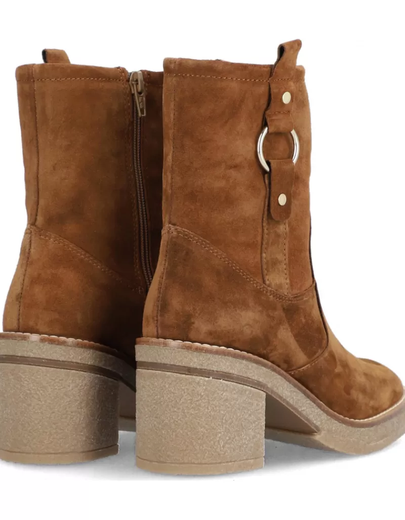 Bota Para Mujer Alpe Janis, Fabricada En Piel (Baby Silk) De Color Cuero Con Tacon De 7,5 Cm, Suela Antideslizante Y Puntera Redonda, Con Cierre Mediante Cremallera Y Cana Media.